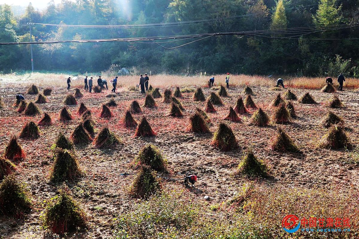 中国甘肃在线成县讯 金秋十月的沙坝,洒满丰收的喜悦,在成县沙坝镇赵坝村荞麦地,群众挥动着手中的镰刀,操作着收割机器,处处洋溢着丰收的喜悦氛围。