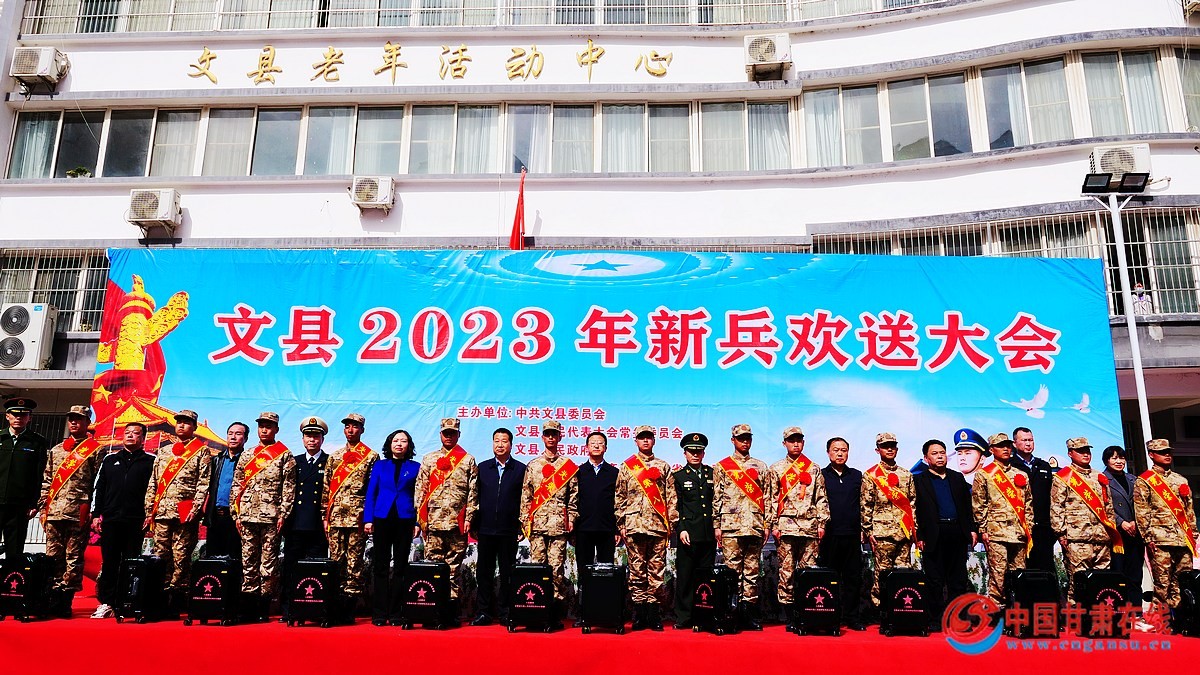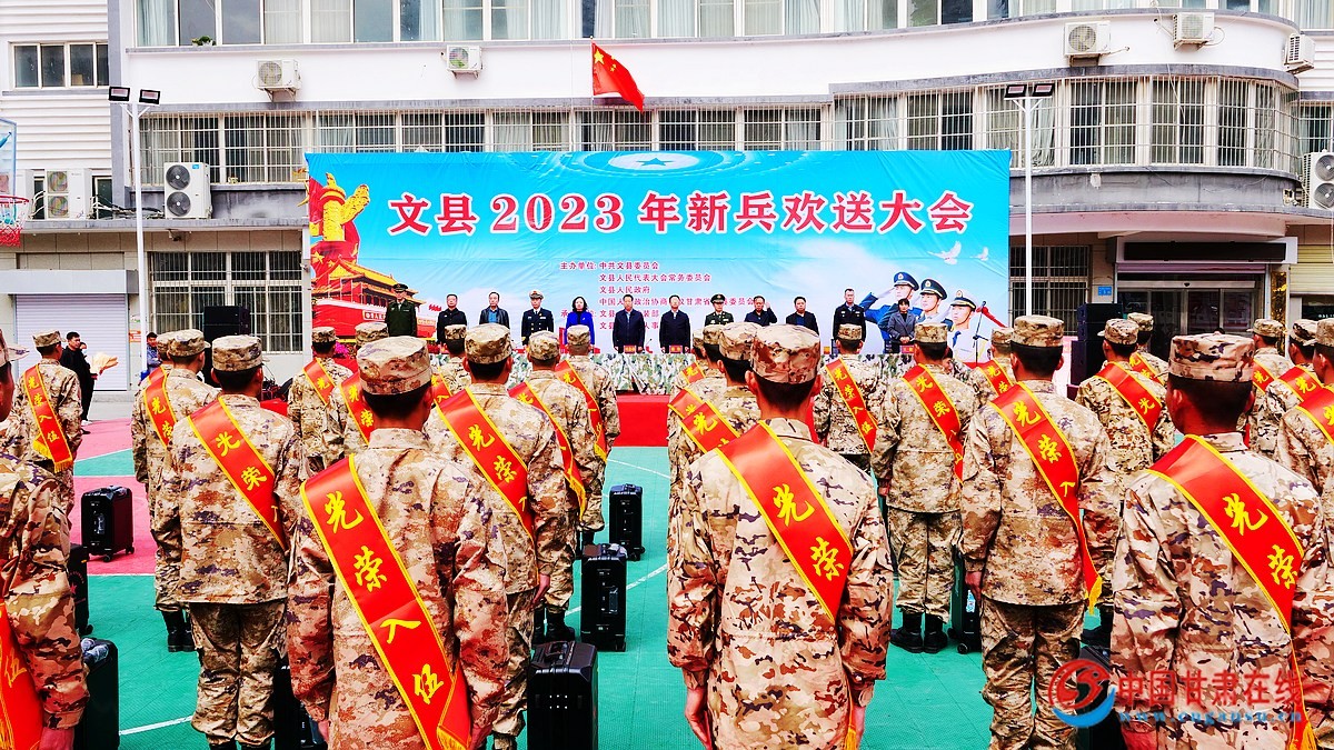 中国甘肃在线文县讯 三月的文县,桃花盛开,春意盎然。一场隆重的新兵入伍欢送仪式在文州活动操场举行。县征兵领导小组副组长、县委常委、常务副县长刘忠福,县委常委、统战部部长袁蓓,县委常委、政法委书记锁锋,县征兵领导小组副组长、县委常委、人武部上校政委曾献军,县征兵领导小组副组长、人武部上校部长周晓鹏,县人大副主任刘刚,县政协副主席张德武出席仪式。县发改局、公安局、退役军人事务局、卫健局、妇联等相关单位负责人、全体新兵及亲友参加仪式。
