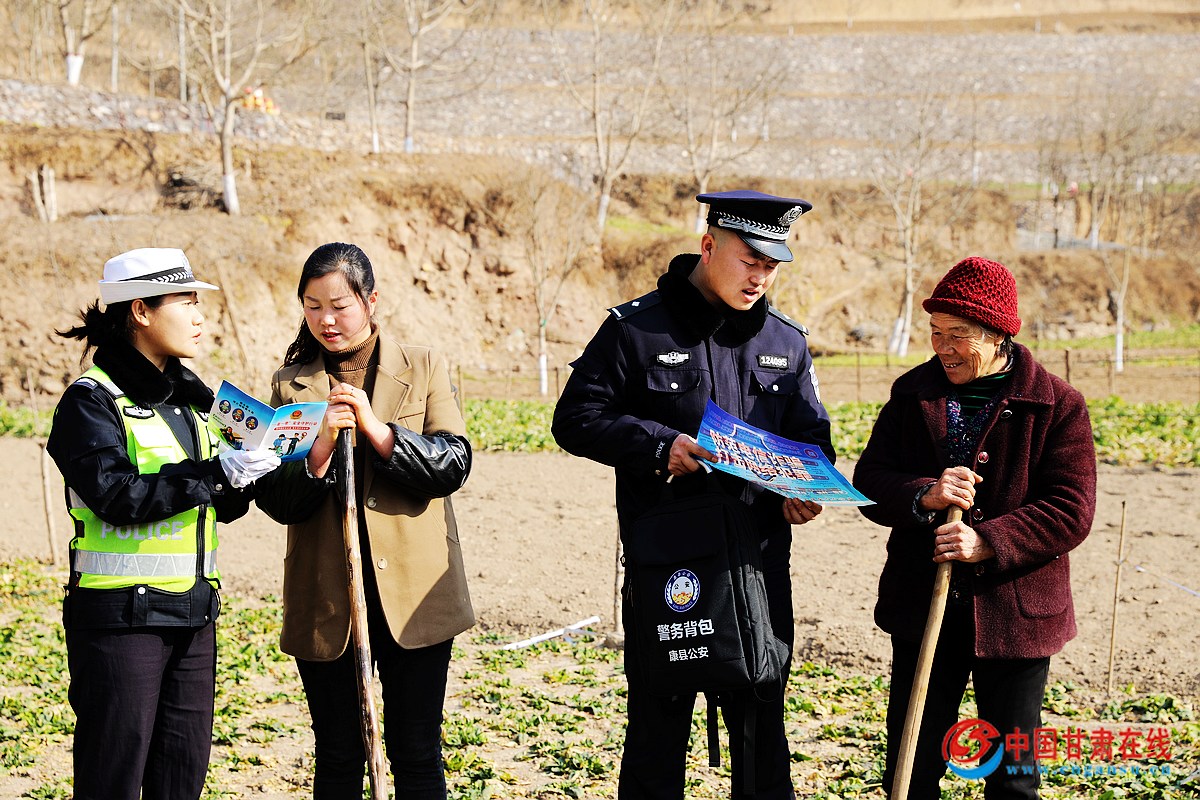 中国甘肃在线康县讯 为深入学习宣传贯彻党的二十大精神,全面做好春季道路交通安全工作和提高群众防电信诈骗应对能力,陇南市康县公安局交警大队依托“两警融合”“1+1>2”的职能作用和“背包警务”便携、高效、可容纳的特点,针对春季农忙季节,利用群众劳作闲暇的空余时间,深入到田间地头和农户家中,用群众听得进、听得懂的语言确保群众坐得住、乐意听、记得牢,面对面开展了深层次、广覆盖、多形式的道路交通安全和防电诈安全知识宣讲活动。