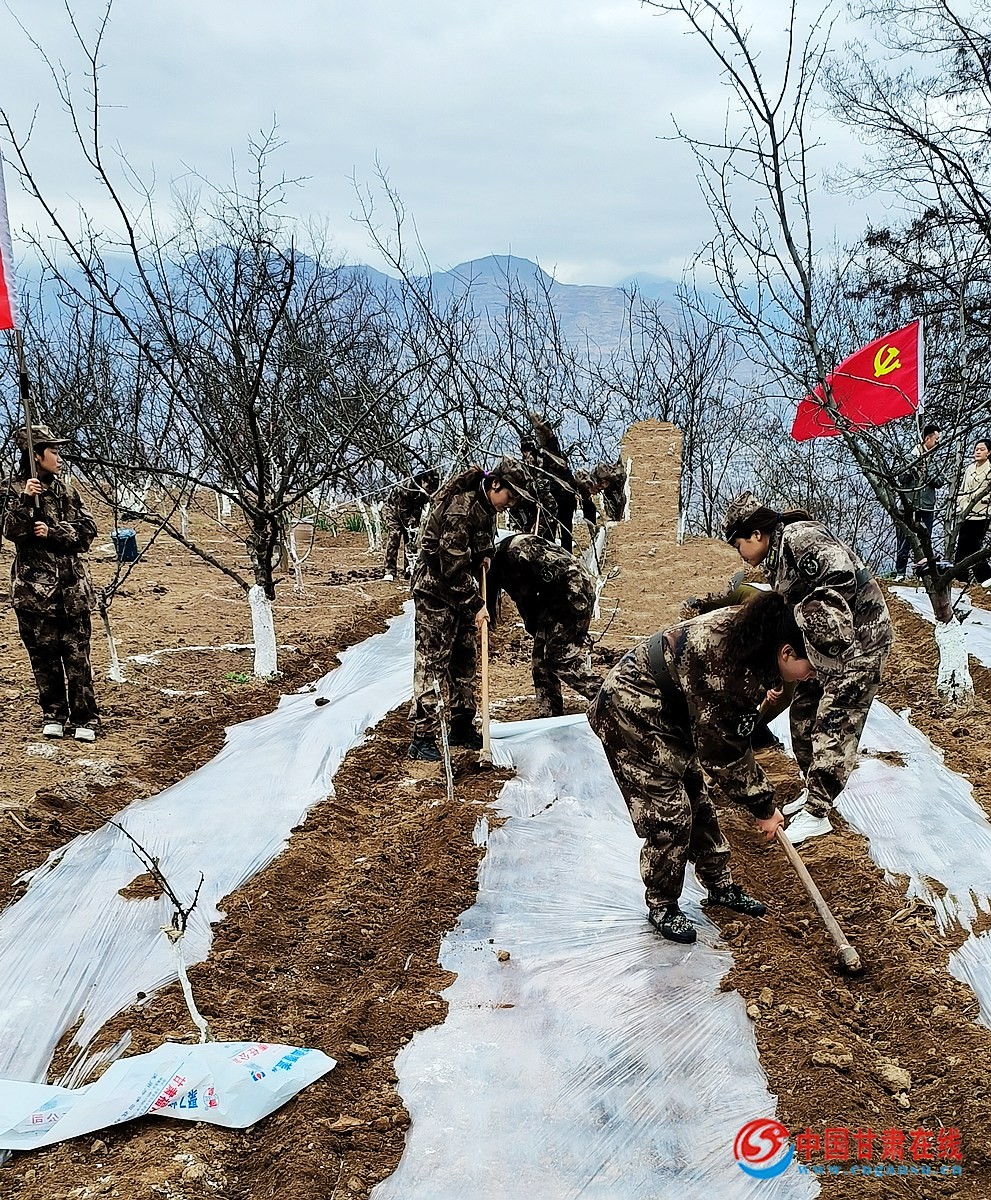 松土、铺膜、下种……近日,陇南市武都区马街镇女子民兵排开展“党建引领春耕生产,全力保障粮食安全”主题党日活动,20名女民兵在农耕一线助农备耕。