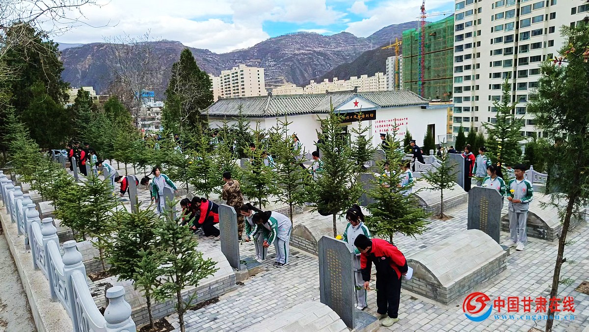苍松滴翠寄哀思,鲜花烂漫慰忠魂。下午3时,宕昌县委宣传部,退役军人事务局、公检法司干警,消防大队、退役士兵代表,旧城中学的300余名党员干部、在校学生聚集在县革命烈士陵园举行清明祭英烈活动。在庄严的烈士纪念碑前,礼兵就位,整衣脱帽,全体党员干,师生齐唱《国歌》,《我们是共产主义接班人》。伴随着深沉的《献花曲》,大家手捧鲜花,缓缓前进,向烈士敬献鲜花,肃穆默哀,表达对烈士们的追思和缅怀。随后,旧城中学师生高举右手,怀着对革命先烈的无限敬意,面向团旗宣誓,铿锵有力的誓词表达了为党和人民事业奋斗终生的决心。祭奠活动中,党员干部们手持扫把、毛巾等工具,对烈士墓碑及周边环境进行清理,经过大家的认真努力,烈士陵园焕然一新。摒弃陋习,文明祭祀,在尊重传统、继承传统的同时增强勤俭节约、绿色环保的理念,并倡导移风易俗、文明祭扫、无火清明的良好氛围,形成文明健康的社会新风尚。随后大家前往烈士陵园陈列馆进行参观,更加深刻地认识和了解烈士们的革命事迹,感受他们为国家和人民所做出的卓越贡献。