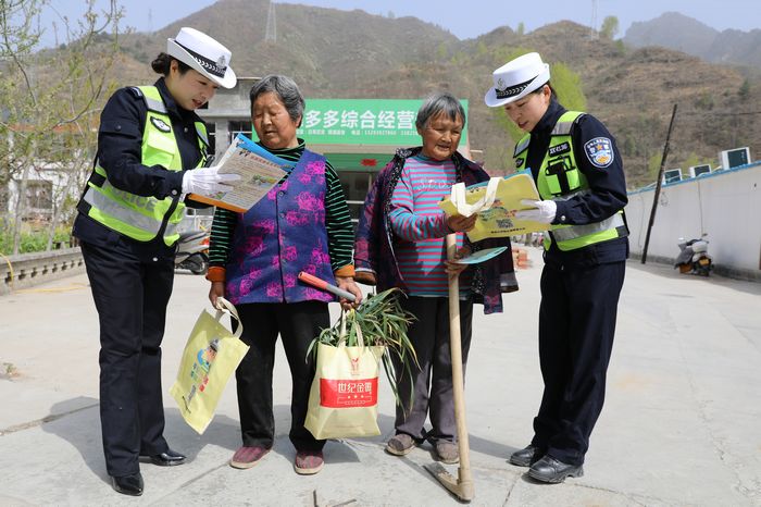 4月11日,陇南康县公安局交警大队宣传小分队民辅警到辖区碾坝镇崔家湾,深入田间地头为正值春耕的群众送去“交通安全”的种子,为春耕生产创造安全有序的道路交通环境。