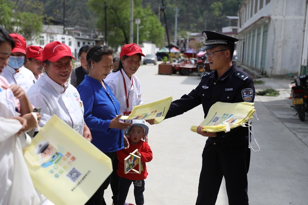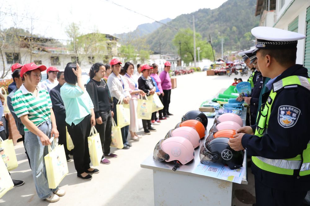 活动现场,摆放了安全头盔、便民挪车码、围裙、手提袋、扇子、笔袋、交通安全和防诈骗、反邪教等知识读本、彩页等精美宣传品,宣传民辅警们通过有奖问答的方式,在愉快轻松的氛围里教育引导群众学习了相关交通安全和防诈骗等知识。