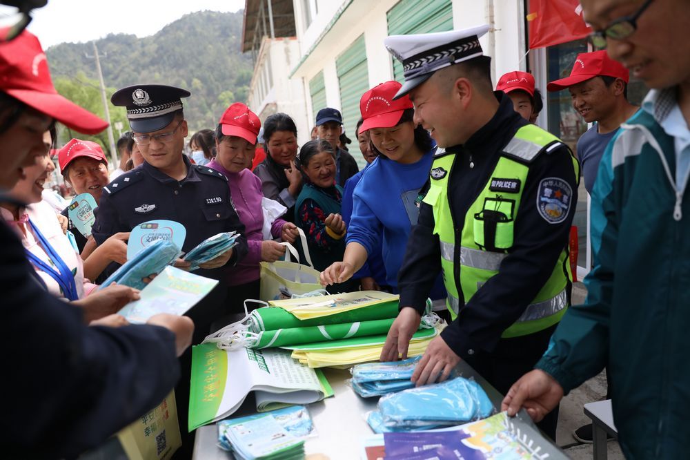 陇南康县豆坝镇的小广场上传来了阵阵惊叹和欢笑声,原来是县公安局交警大队利用辖区豆坝镇赶集之际,联合辖区派出所民辅警和邮政工作人员到豆坝镇集市开展警邮携手讲安全“美丽乡村行”交通安全巡回宣讲活动。