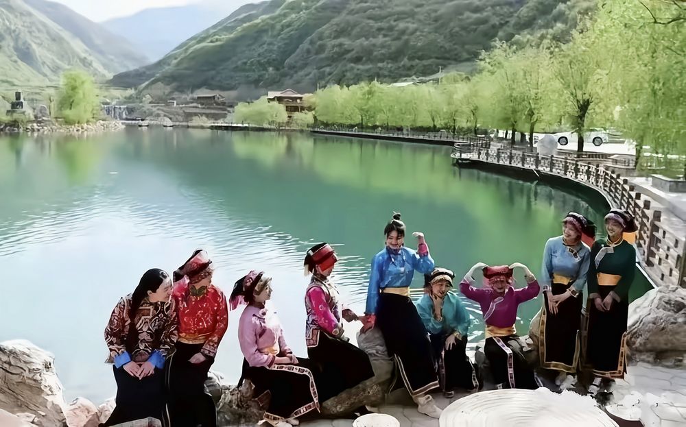 在鹅嫚湖络绎不绝的游客穿行其中,或驻足观看、或拍照留恋……着一身衣袂飘飘的藏服,漫步在斑驳的石板路上,鸟语花香,空气清新,微风吹拂,别有一番滋味。湖面上烟雨朦胧,像是一张素雅的水墨画。