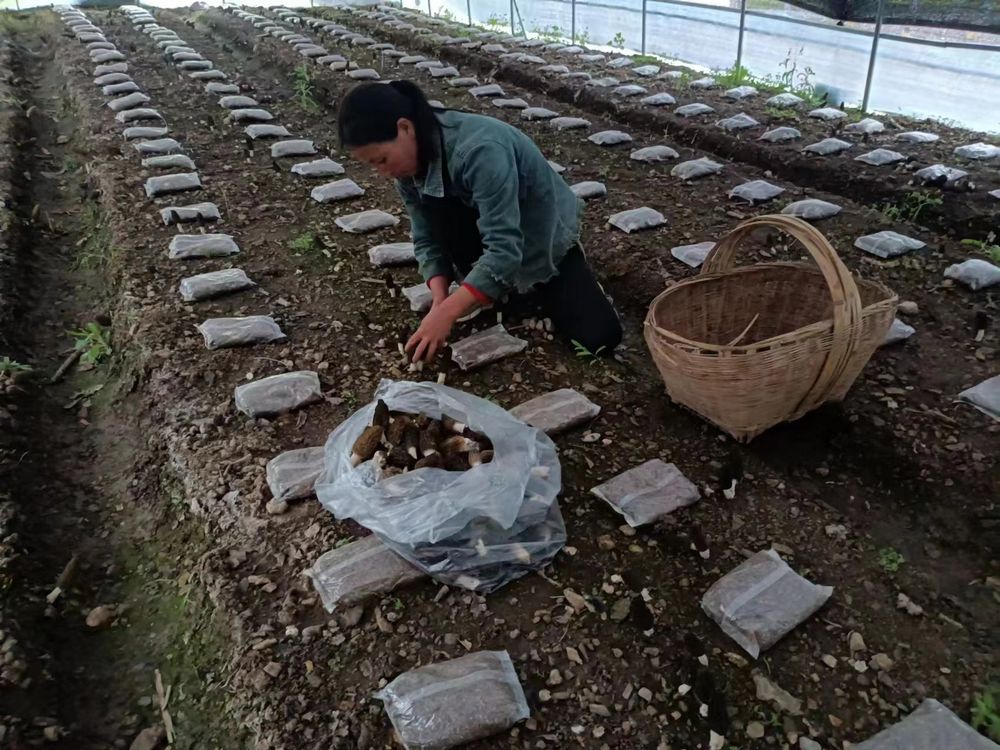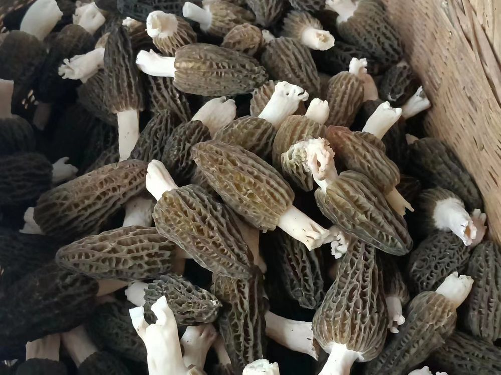 走进羊肚菌大棚,一个个菌包整齐排列,鲜嫩的羊肚菌争相探出灰褐色的"小伞苞",错落有致地盛开在菌垄上,散发着菌子独特的芳香,一棵棵、一簇簇,挺着胖墩墩的腰杆,长势煞是喜人。采摘工人们正小心翼翼地用剪刀从菌子底部划过,把一朵朵羊肚菌采下装进筐里,白的脚,黑的伞,或大或小的羊肚菌在地里紧挨着。
