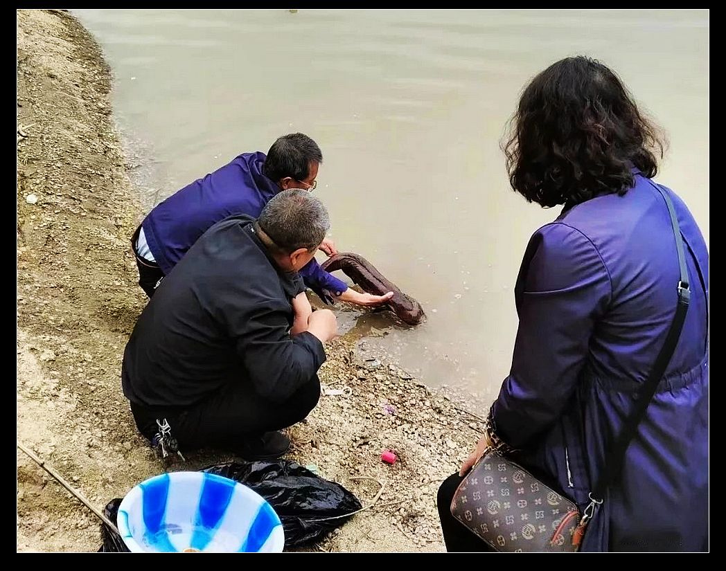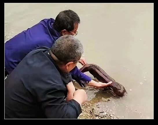 中国甘肃在线礼县讯(供稿:马小春)5月25日,一位爱心人士在甘肃礼县西汉水城关段河道浅水滩处发现一尾大鲵,在接到消息后,礼县畜牧兽医站组织专业人员进行了鉴定,确定为野生大鲵,体长87厘米,体重3.25公斤,属国家二类保护动物,随后安排专业人员在燕子河上游适宜放生区域进行放生。