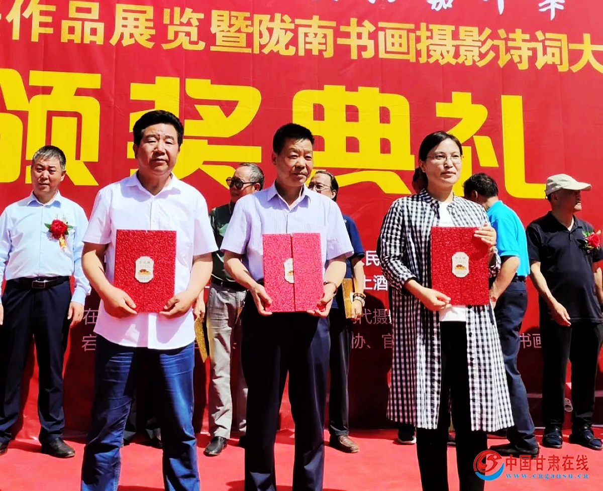 仪式上,宣读了获奖名单;介绍了筹备评奖情况;为获奖作者颁发了证书和奖品;主办方为哈达铺中学捐赠了书画作品;全体人员参观了书画摄影作品。