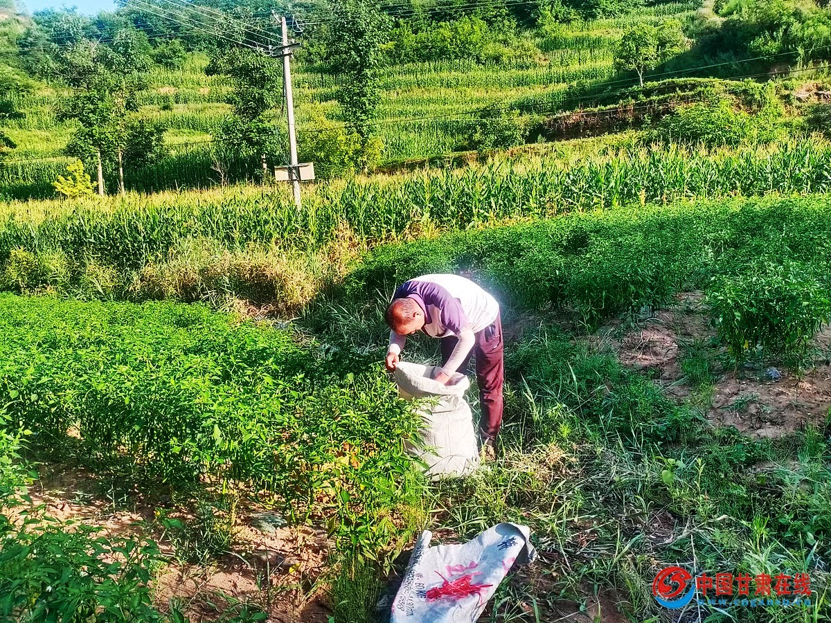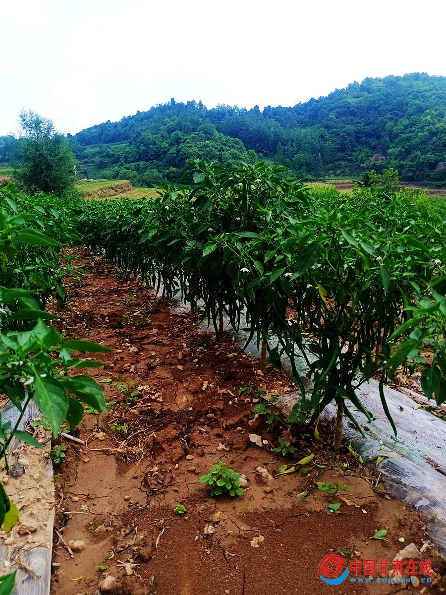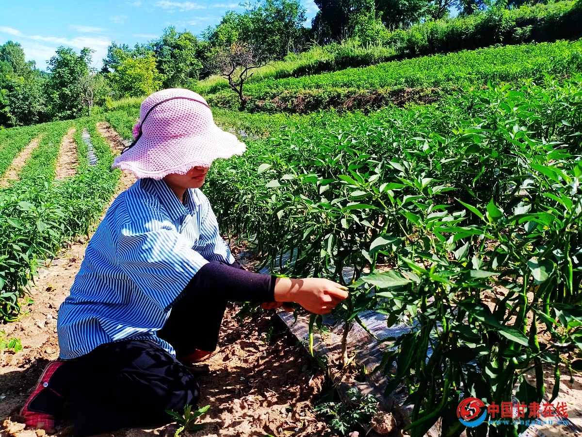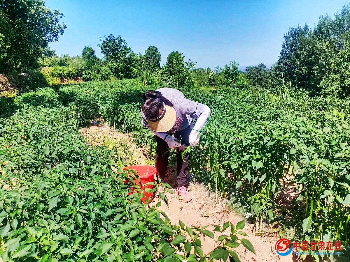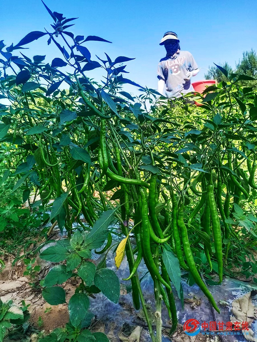 中国甘肃在线徽县讯(通讯员 马育江) 时下,正值辣椒成熟采摘时期。在徽县永宁镇高山村的辣椒种植田里,村民们弯着腰,拨开绿叶,摘下长长的辣椒,脸上满是喜悦的笑容。放眼望去,一株株长势喜人的辣椒在阳光的照射下青翠欲滴、绿意盎然、随风摇曳。