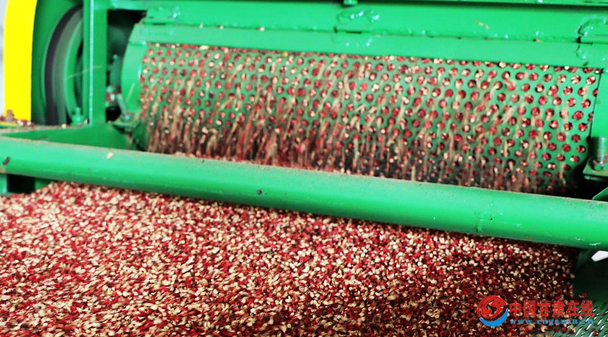 采摘,晾晒,分选,除尘,除杂,色选……在花椒籽加工生产线上,工人们将收购来的花椒籽投入进料口中,智能化设备就能自行运作,根据订单需求制作成花椒籽油等产品。