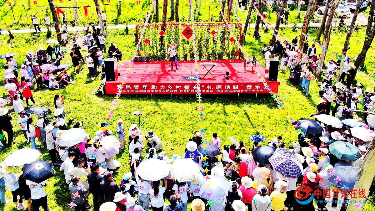 中国甘肃在线宕昌讯 花儿与云朵,藏包与美食,音乐与狂欢,开心与悠闲……8月5日,宕昌县青年助力乡村振兴“扎麻汤阁”音乐会在木耳乡奤治村举行,来自周边乡镇的千余名游客和青年文艺志愿者齐聚草原营地,在希望的田野上共赴林间草原音乐盛会,用激情点燃了这个清凉夏天。