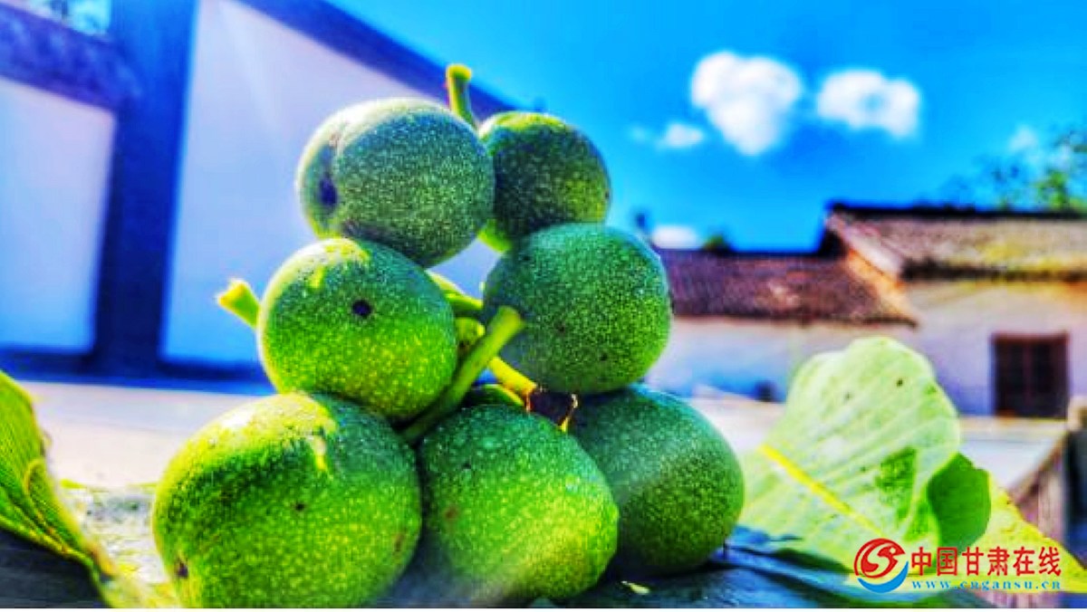 中国甘肃在线两当讯 走进两当县兴化乡核桃种植区域,一眼望去,连绵不断的核桃树,郁郁葱葱,太阳通过茂密的枝叶在青翠欲滴的青果核桃上洒下斑驳的光点,随风摇曳的树枝挂满核桃,树下的知了唧唧吱吱,一同奏响核桃丰收在望的夏日协奏曲。