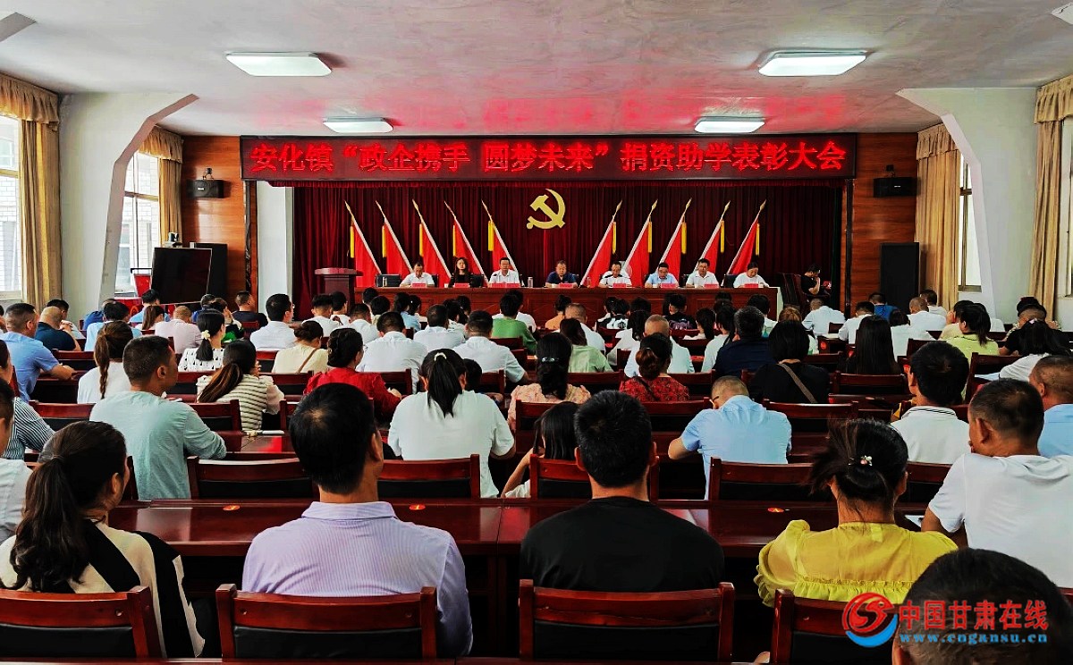 表彰大会上,华龙建设集团有限公司、甘肃隆海鼎诚矿业有限责任公司向安化镇高考优秀学子捐助资金,安化镇为其颁发致谢证书,并一同为高考优秀学子共26人进行表彰;鼓励广大学子要珍惜韶华,坚定理想信念,树立远大抱负,学有所成后用实际行动报效祖国,回报社会,尽自己所能返哺家乡,传递爱心。