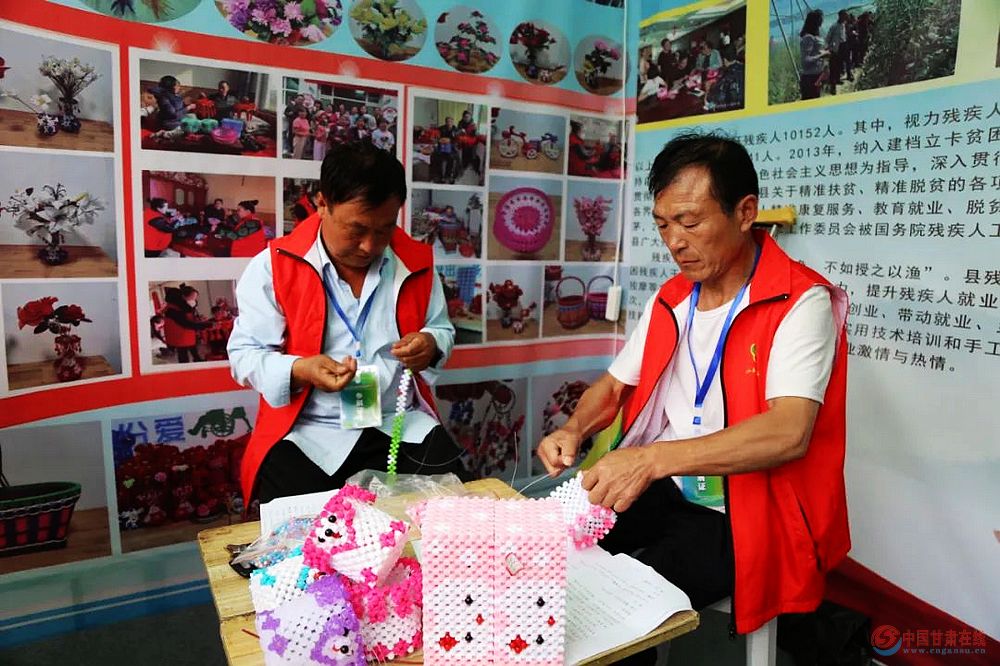 刚喜儿是西和县十里镇的一位肢体二级残疾人,在残联的组织和帮助下他学习了手工串珠技术,现在可以在家通过网购材料后编制抽纸盒、花瓶等小件赚取利润。