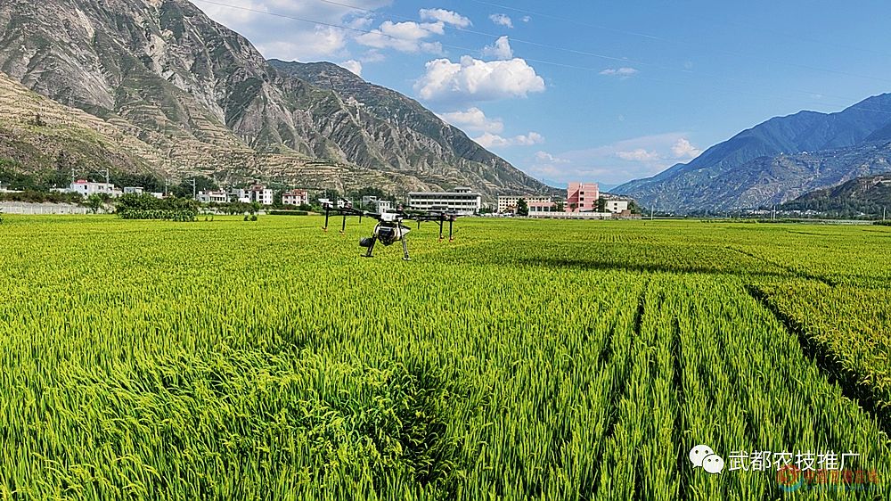 中国甘肃在线武都讯(通讯员王治)为落实省委省政府关于抗旱保秋粮丰收的要求,按照区委区政府的统一要求,在局党组的安排指导下,连日来,武都区农技中心抓住秋粮作物生长的关键期,加强水稻、玉米、大豆、高粱等秋粮作物综合管理,科学应对当前高温干旱、病虫危害、低温早霜等灾害因素,深入田间地头进行技术指导,统筹组织种粮大户利用先进的植保无人机开展“一喷多促”作业,确保十天内完成任务,达到秋粮丰收的目的。