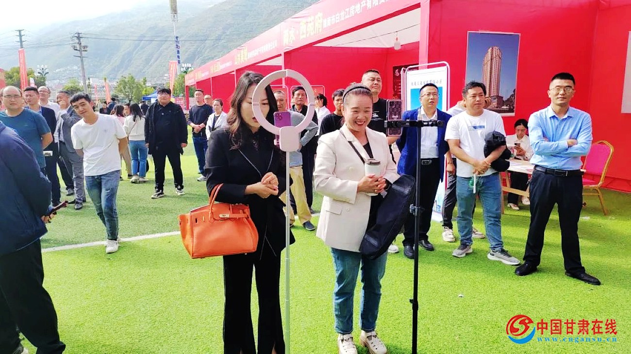中国甘肃在线武都讯(通讯员 胡本平 王军强)9月27日,陇南市第二届房交会暨武都区惠民生商品房促销让利月活动启动仪式在武都区滨江体育场广场举行,为了促进商品房交易,宣传优惠政策,区电商中心组织区内网红12人,在“房交会”现场开展房产宣传销售直播活动,助力“房交会”大卖特卖。