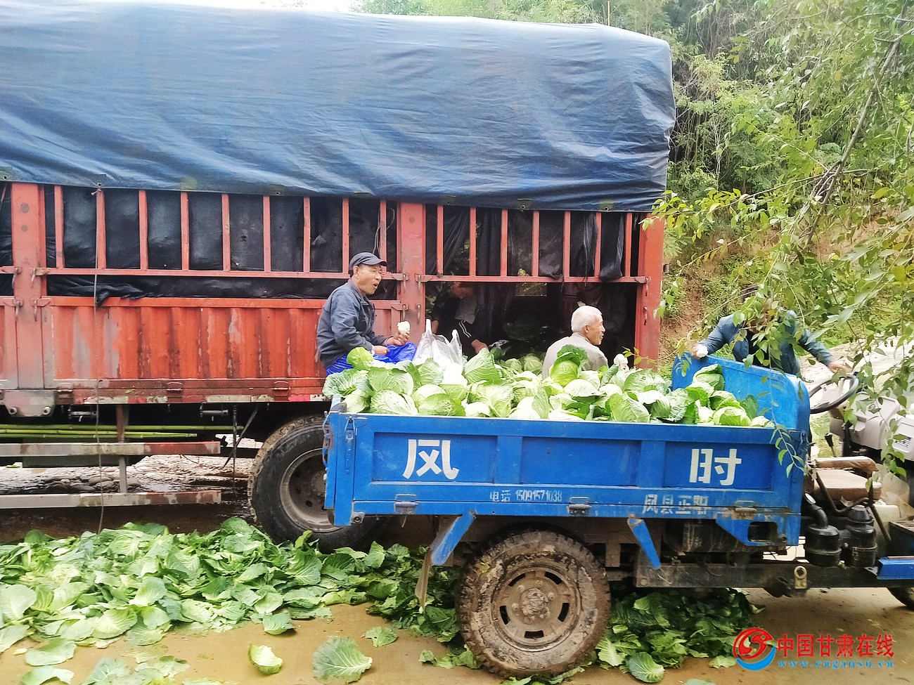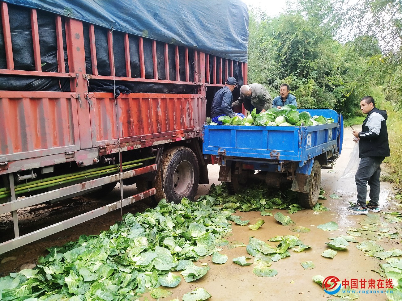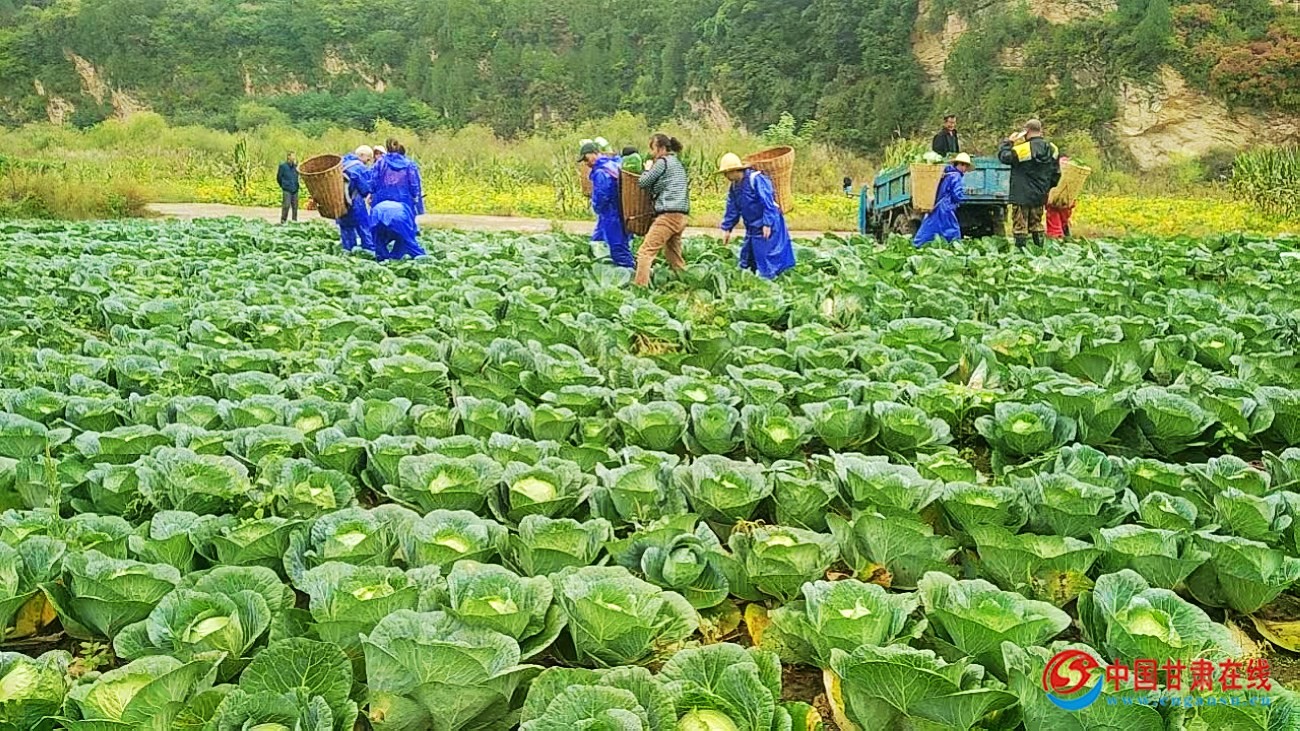 中国甘肃在线徽县讯 时下,徽县永宁镇唐庄村种植的60亩甘蓝已全部进入收获期。走进甘蓝种植基地,绿油油的甘蓝长势喜人、颗颗饱满,圆鼓鼓地“躺”满一地,菜农们正忙着挑菜、捆扎、搬运、装车,脸上写满了丰收的喜悦。