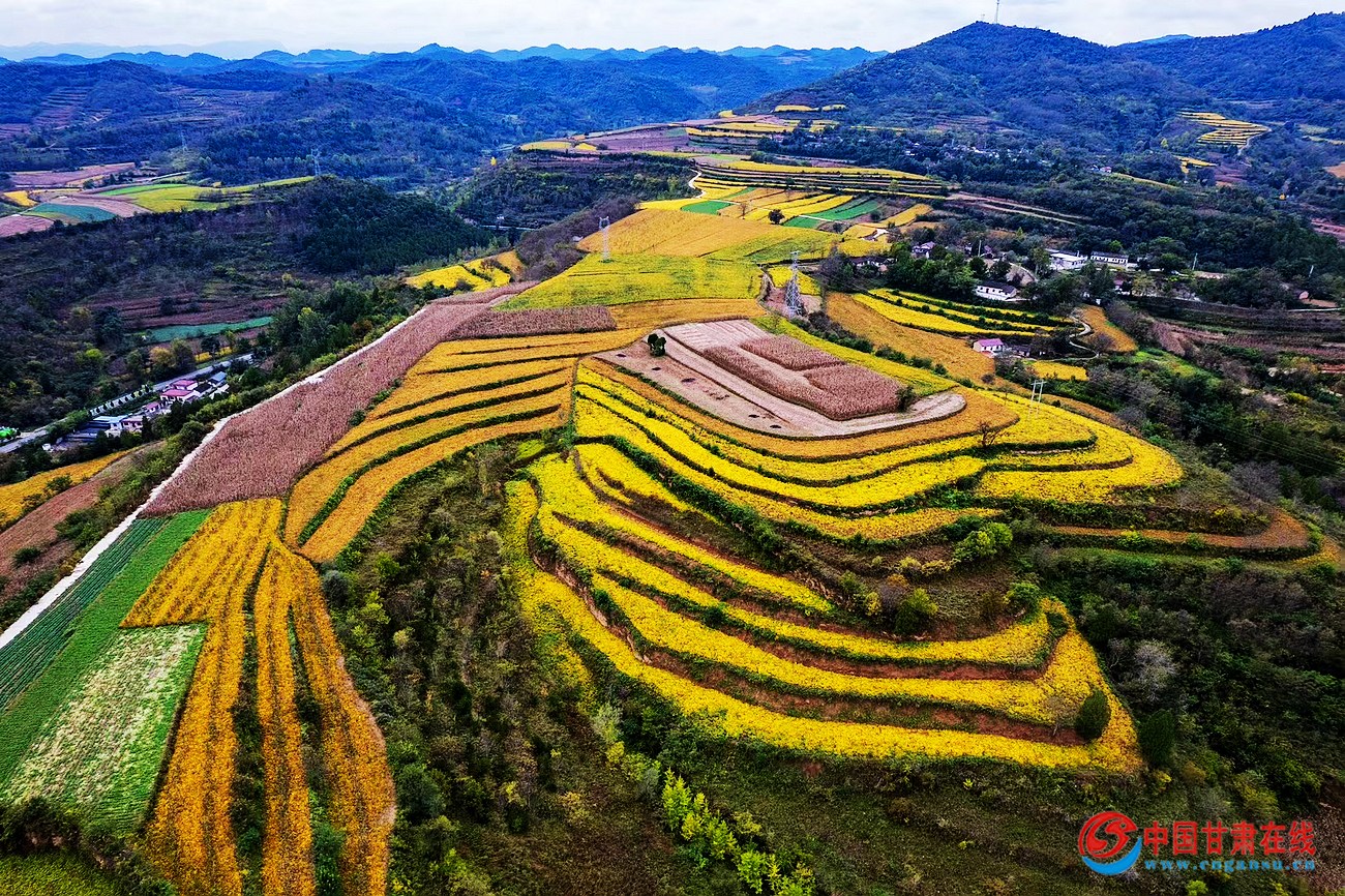 中国甘肃在线徽县讯(通讯员 马育江)金秋十月,沃野千里。时下,走进徽县永宁镇郭坪村千亩“陇黄3号”大豆种植基地,映入眼帘的一片片大豆田呈现出迷人的金黄色,在山间黄绿相映,一派静待丰收的美好景象。