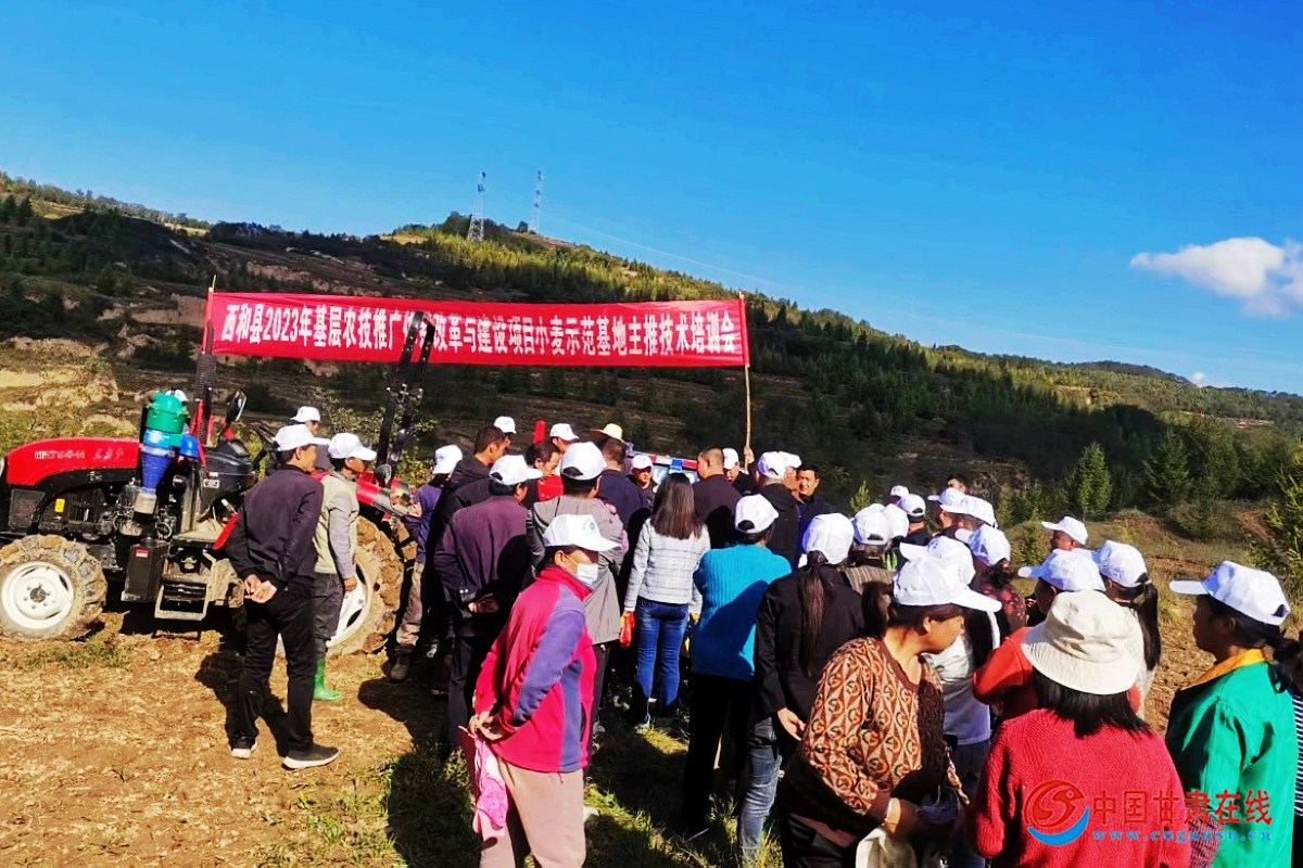 中国甘肃在线西和讯(通讯员 巩凡)为抢抓农时,西和县全面落实好23.9万亩小麦秋播任务,加快2023年基层农技推广体系改革与建设项目小麦产业年度主推技术落实落地。连日来,西和县农技、农机中心、种子管理站在兴隆镇牟山村开展小麦秋播主推技术培训和现场观摩会。