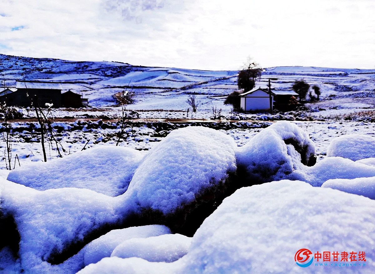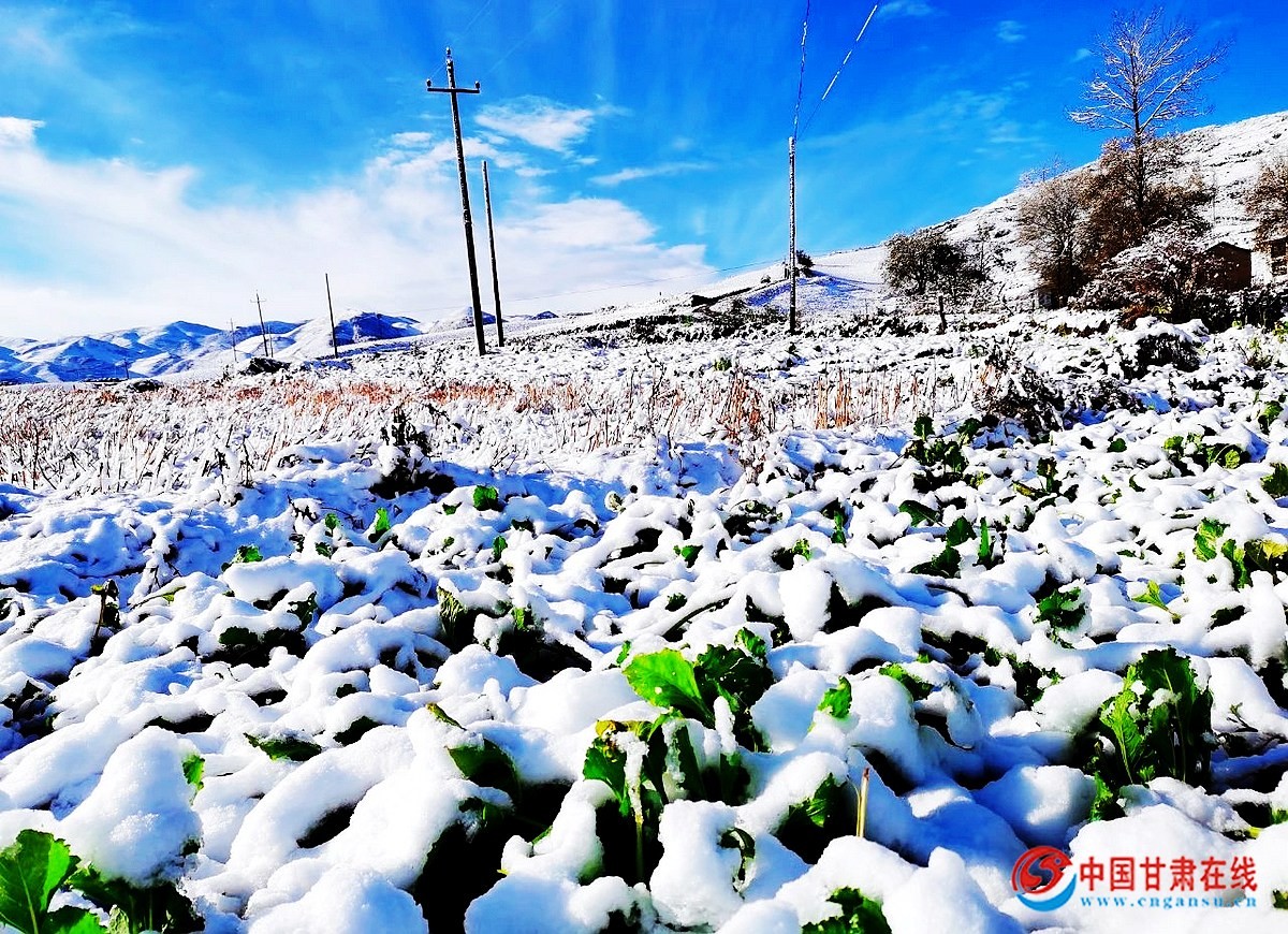 中国甘肃在线武都讯(通讯员 李圆丰 王小军)近日,武都区池坝乡迎来了入秋以来的第一场雪,入眼处,乱石野草秒变琼花碎玉,青绿蔬菜染上人间素白,天地纯净、美不胜收、人间值得。