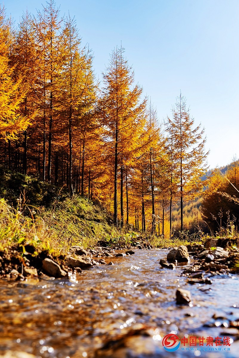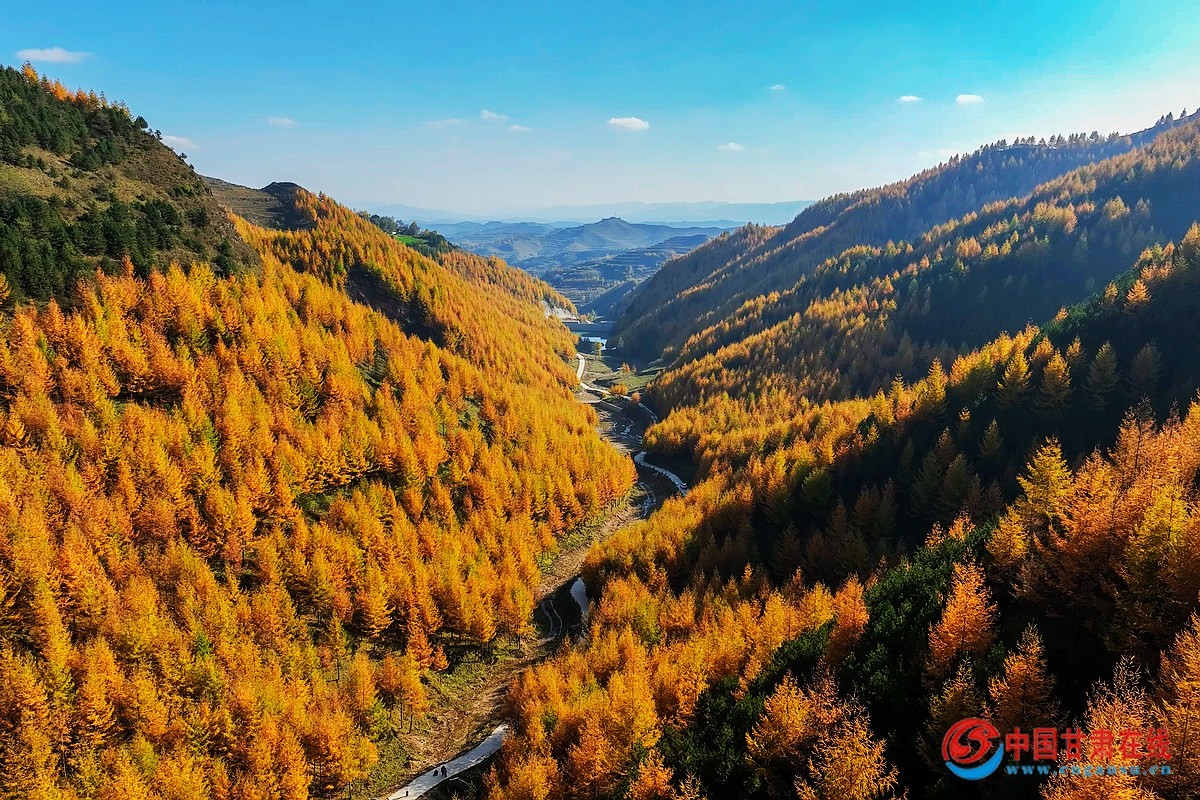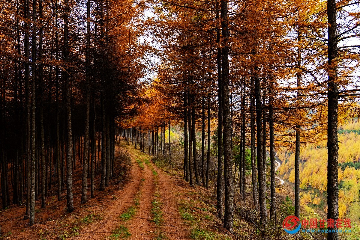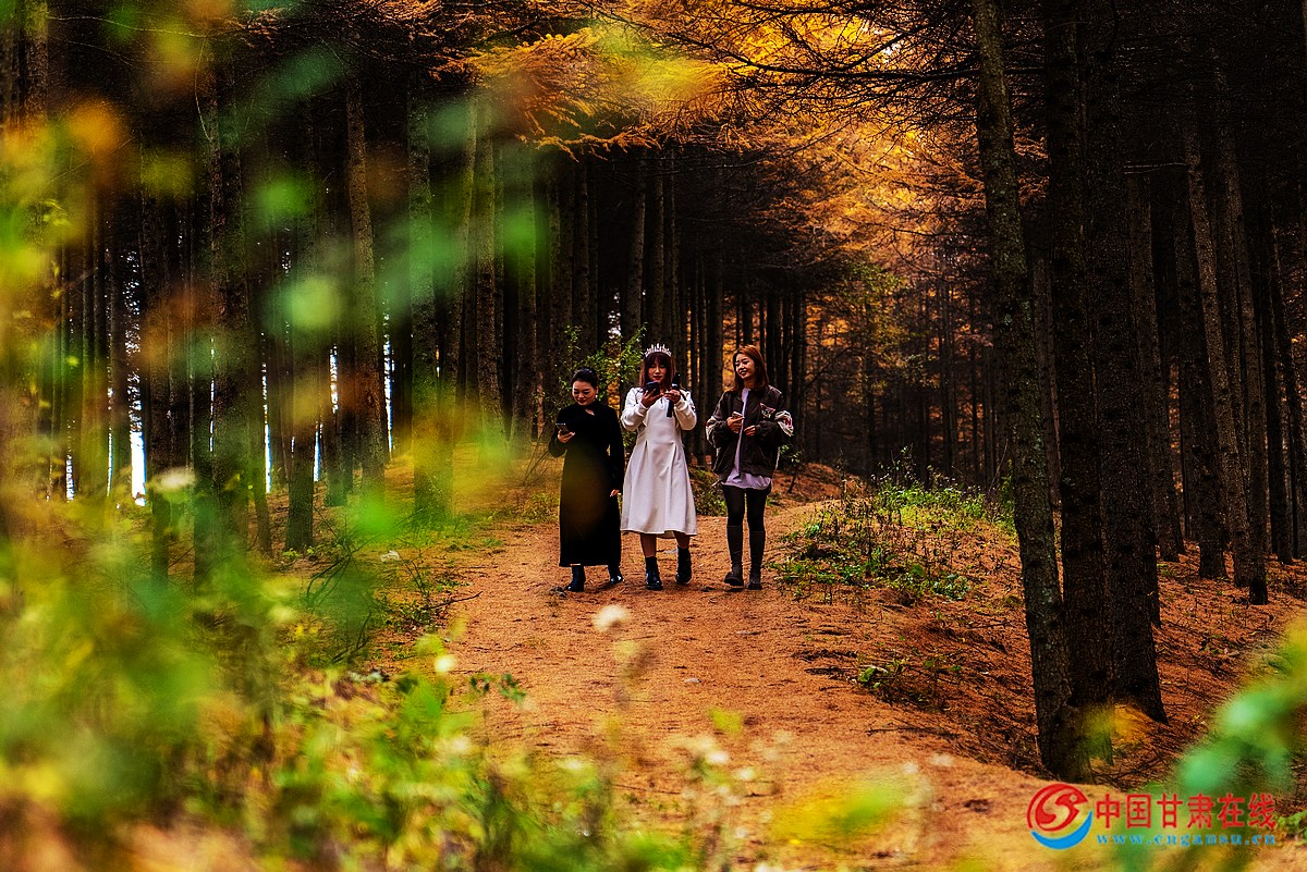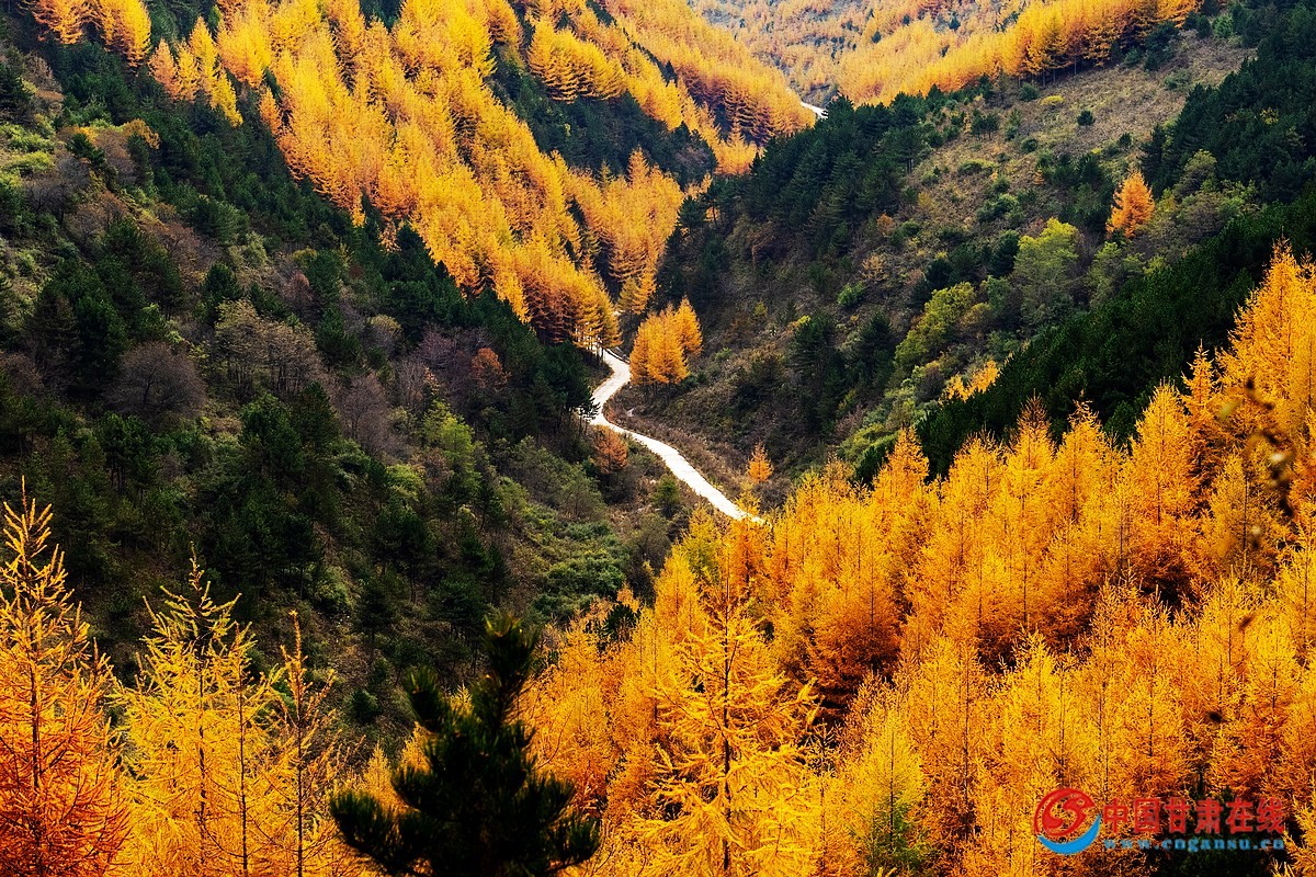 中国甘肃在线西和讯(通讯员 姜波亮)深秋时节,西和县苏合镇丁河村千亩落叶松渐次经霜,漫山遍野呈现金黄色,迎来一年中最美丽的季节。放眼望去,整座山仿佛披上了一层黄黄的外衣,宛若油画。山谷松树挺拔,流水潺潺,厚厚的松针将密林小路完全覆盖,美不胜收,吸引了众多游客拍照打卡。
