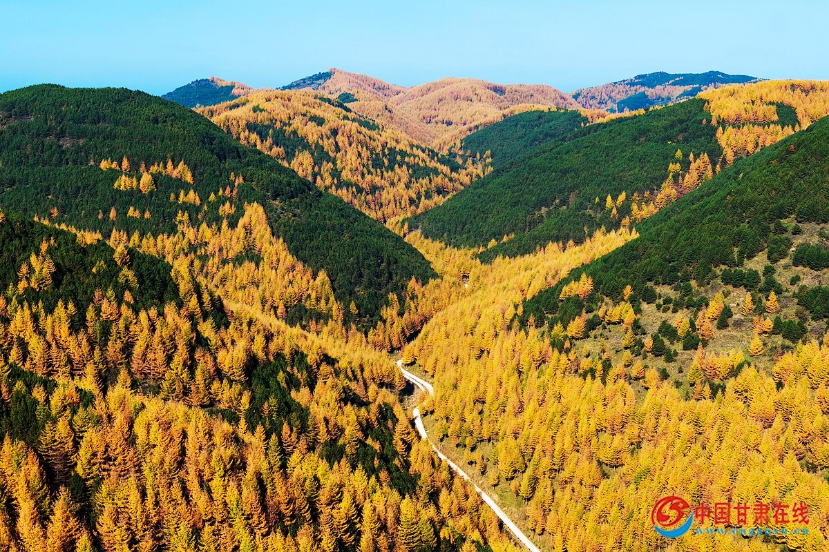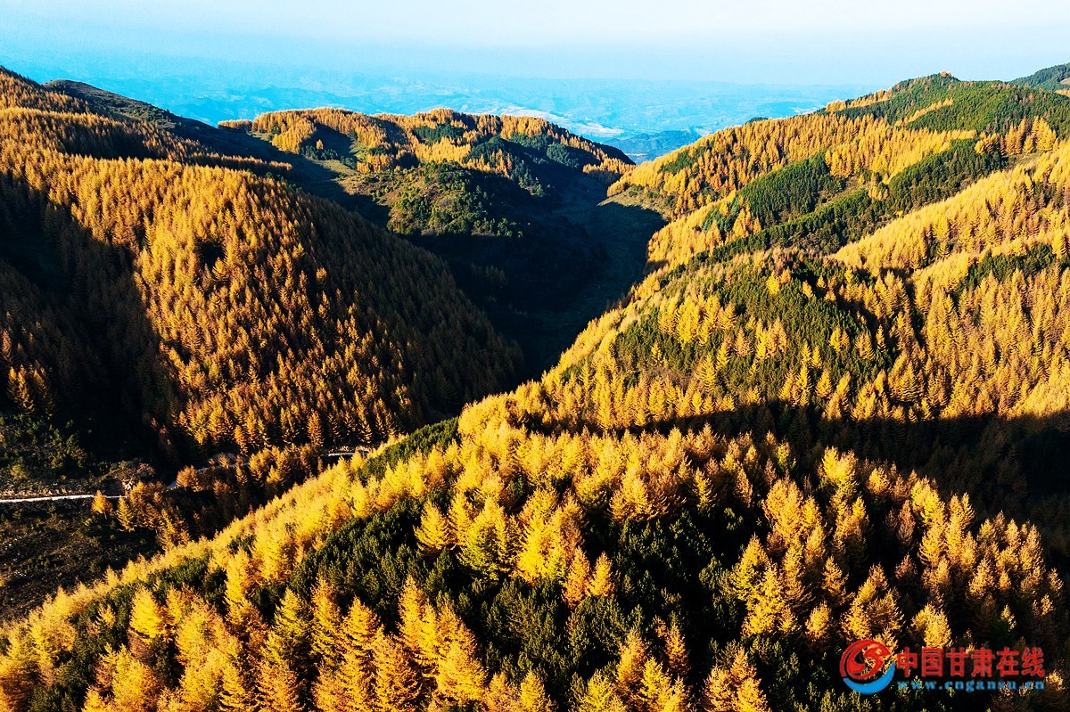 中国甘肃在线西和讯(王宝 李娟 魏朵朵)如果说秋天的美树叶占一半原因,那么落叶林一定是最重要的角色。近日,西和县苏合镇丁河、庞沟村附近,漫山遍野的落叶松黄金披身,远远望去一个山头连着一个山头,黄簇簇、金灿灿缔造了无比绚丽的秋天。