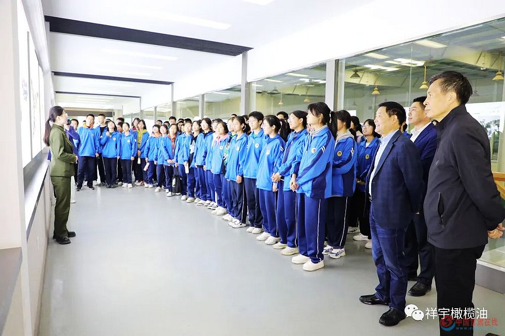 祥宇公司总经理李建科对陇南一中师生的到来表示了热烈欢迎。在参观公司文化长廊时,同学们整齐列队,听取了讲解员关于陇南油橄榄产业发展历程、祥宇企业文化、油橄榄产业扶贫、橄榄油生产工艺、企业发展成就等方面的讲解。