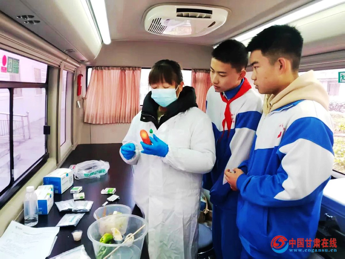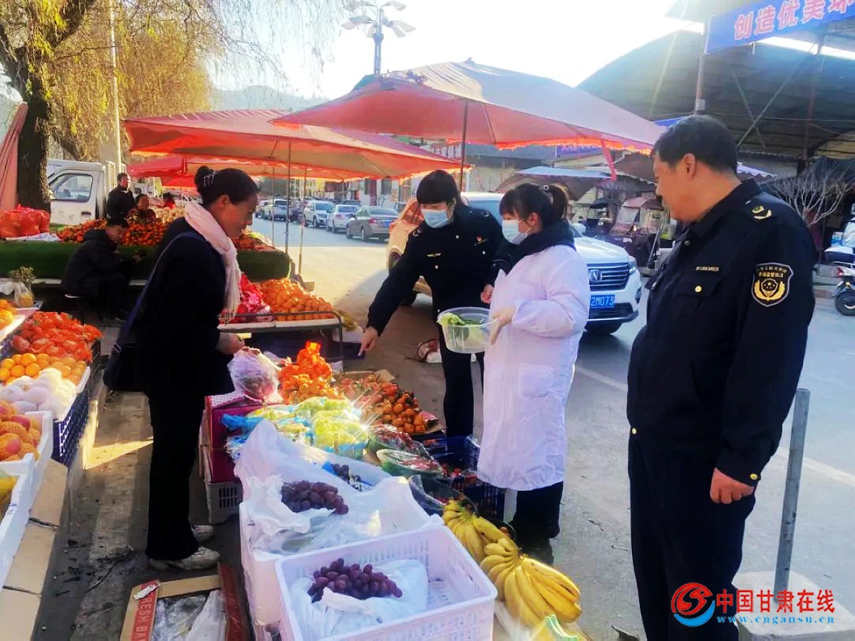 中国甘肃在线两当讯 为进一步加强食品安全监管,及时防范和化解食品安全隐患,12月4日,两当县城关镇市场监管所联合县局在香泉中学、农贸市场开展“尚俭崇信尽责,同心共护食品安全”“你点我检、你选我检””食品安全活动。