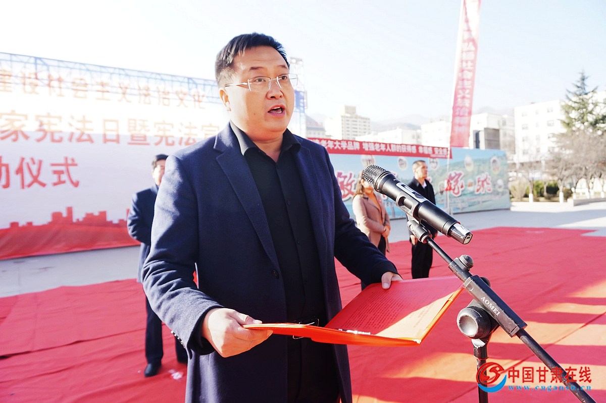 中国甘肃在线宕昌讯 12月4日是第十个国家宪法日。当天上午,宕昌县在新城区新时代文明实践广场举办了“12·4”国家宪法日暨宪法宣传周活动启动仪式。弘扬宪法精神,建设法治文化。