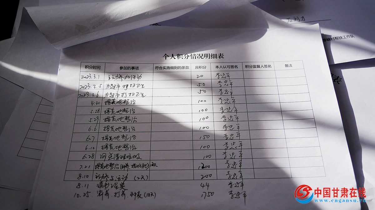 “今天家里米面吃完了,正好参加村上的环境卫生打扫活动积了分,兑了之后就领到了米和面。”村民李生军说。