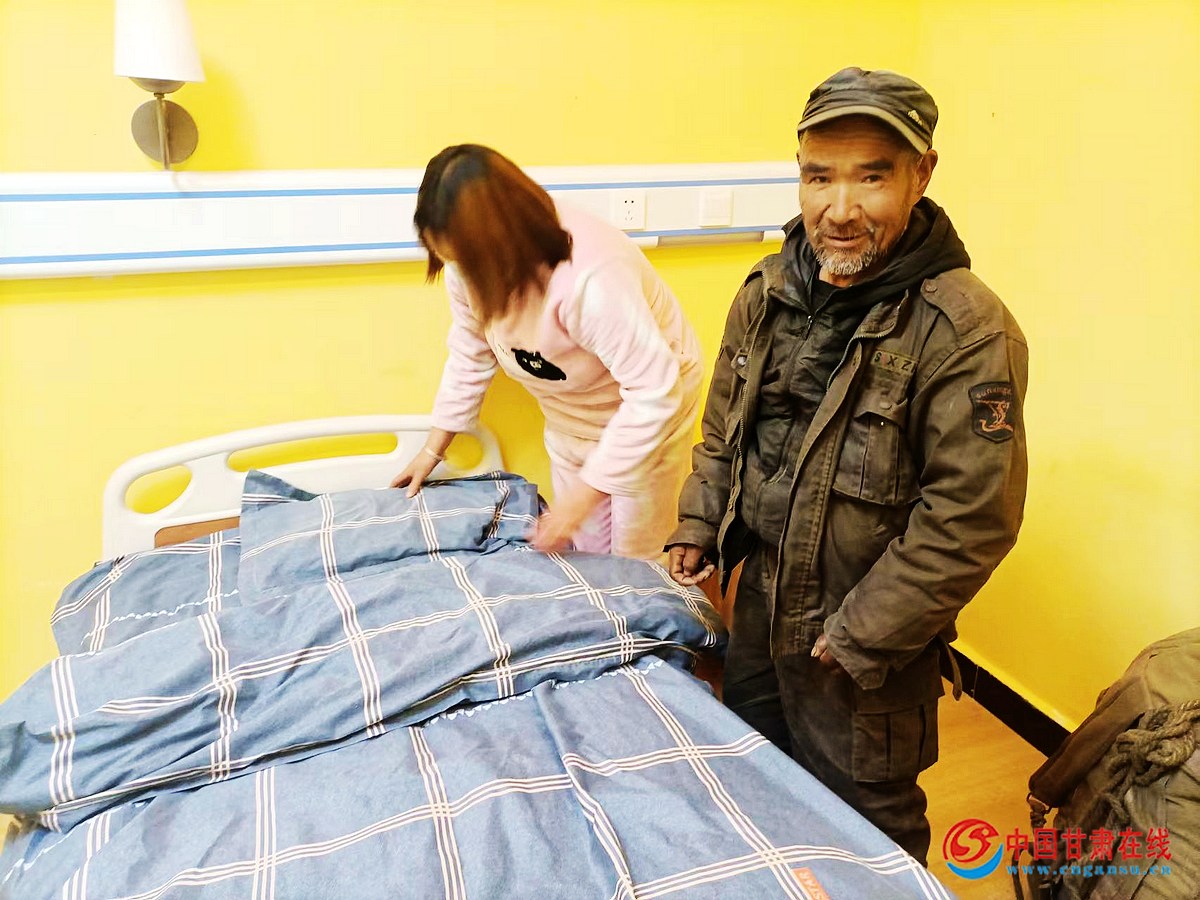 唐尕保,是一名说不清楚从哪里来、到哪里去的流浪乞讨人员。12月7日晚9时许,民政流浪乞讨站开展“寒冬送温暖”夜间巡逻行动中,在城区电信局水渠边发现他的,当时冻的手脚发抖、神志不清、语无伦次,连名字都说不清楚,经过县民政局救助站人员反复构通信息,最终确认50多岁唐尕保为哈达铺镇撮布村二社人,二十多年前离家出走,当晚便将他安置到城关中心敬老院,工作人员给他开房、铺床、换衣、端饭、洗头……唐尕保的脸上洋溢着激动和喜悦,真没想到这辈子能住上暖气房,吃上营养餐,今后再也不用受冻饿肚子了,民政干部就是我的亲人,给我安了温暖的家,“感谢党的好政策......”。