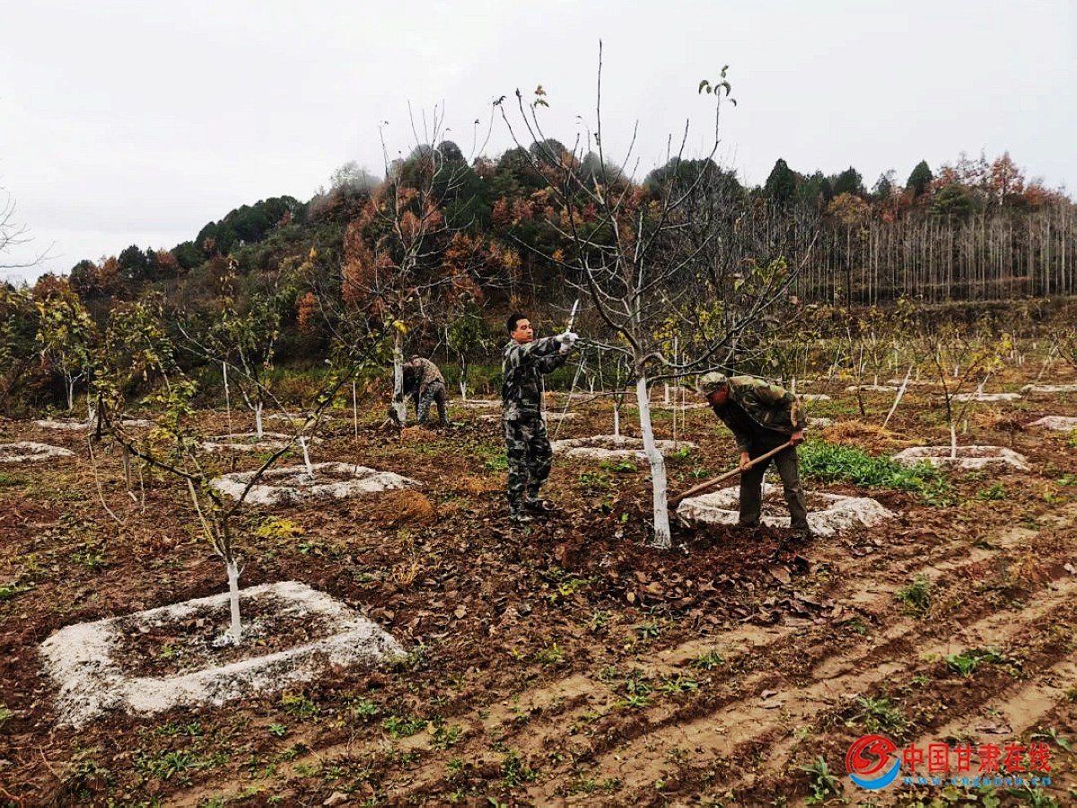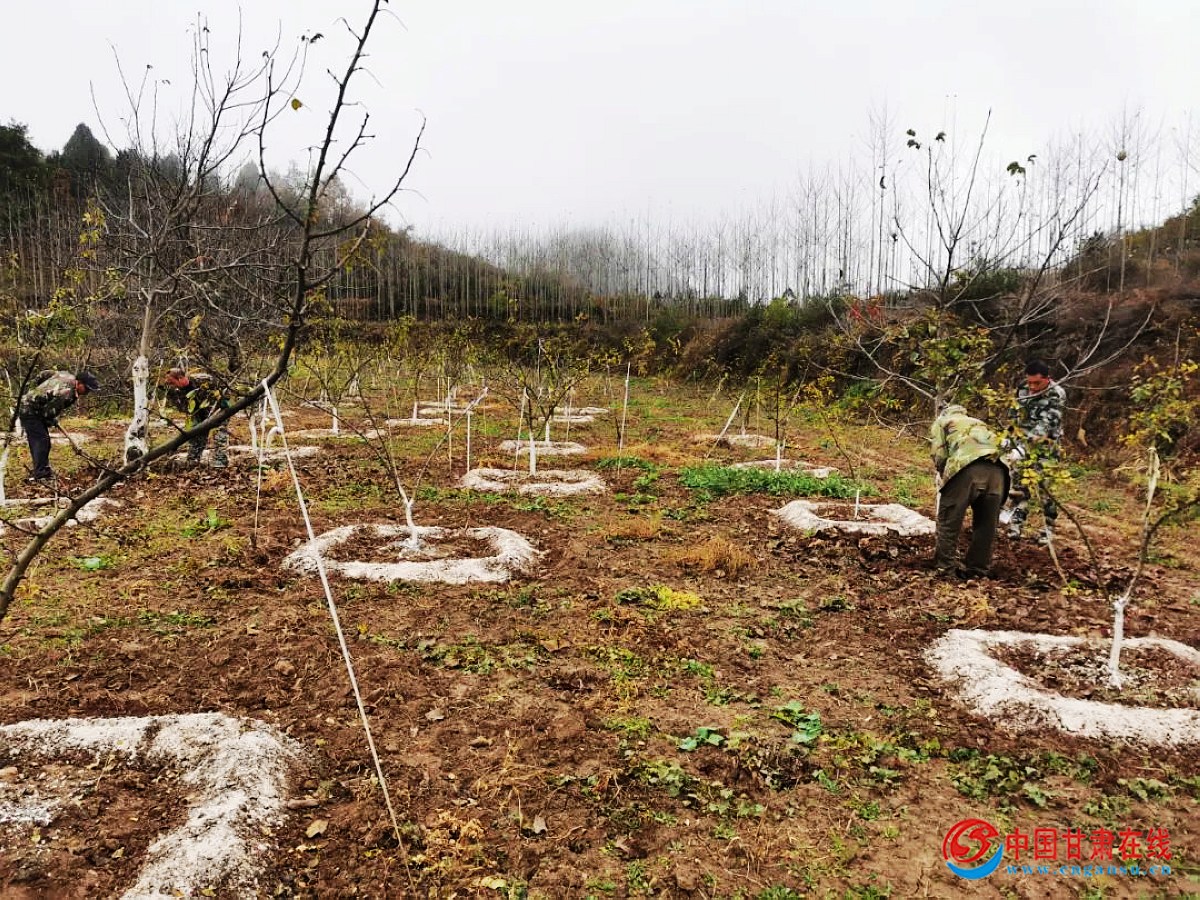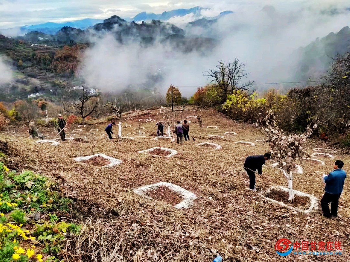 中国甘肃在线两当讯 自“双百千万”工程开展以来,两当县杨店镇夏家庄村全面统筹帮扶力量、广大党员群众等力量,依山就势,因地制宜,全身心投入到秋冬季核桃、花椒栽植及管护工作中,确保全面高质量实现“四边四栽”和地埂全覆盖。