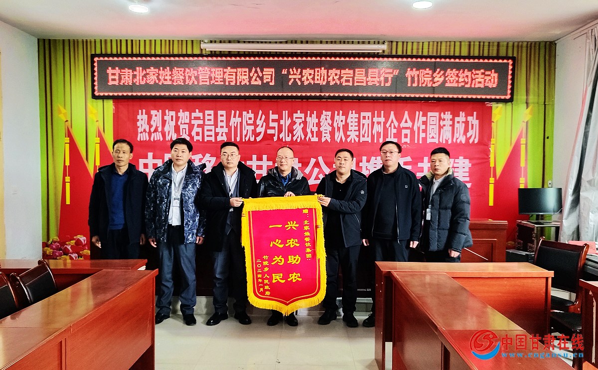 签约仪式上,竹院乡党委副书记、政府乡长唐白强与甘肃北家姓餐饮管理有限公司代表签署了订购框架协议 ,大草坡村办合社罗满中与企业代表签订木耳采购协议,举行了竹小院露天木耳产业基地揭牌仪式,并向甘肃北家姓餐饮管理有限公司赠送了锦旗。