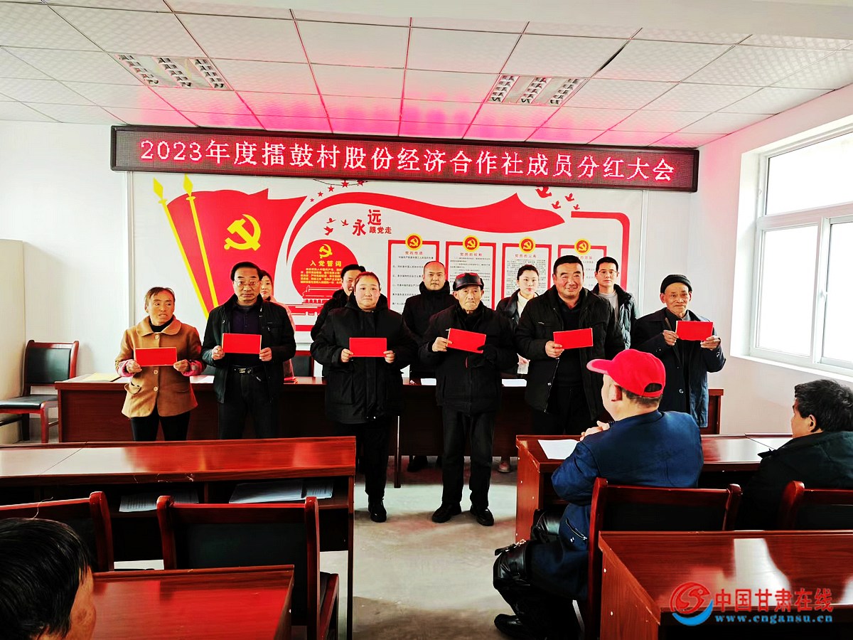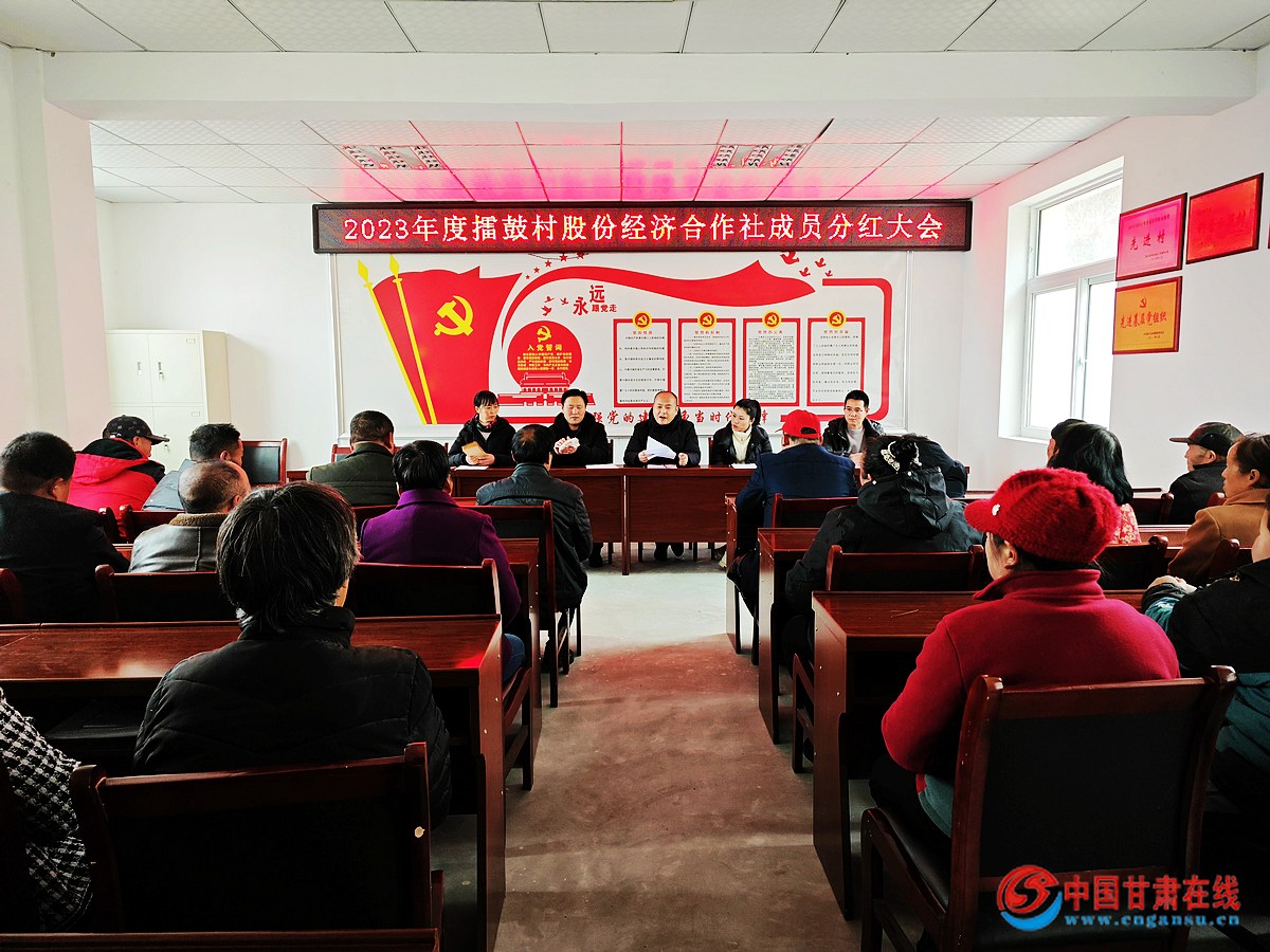 中国甘肃在线两当讯 新春将至,擂鼓村的村民迎来一件喜事。1月18日,西坡镇擂鼓村股份经济合作社召开2023年度分红大会,分红现场气氛热烈,喜气洋洋。