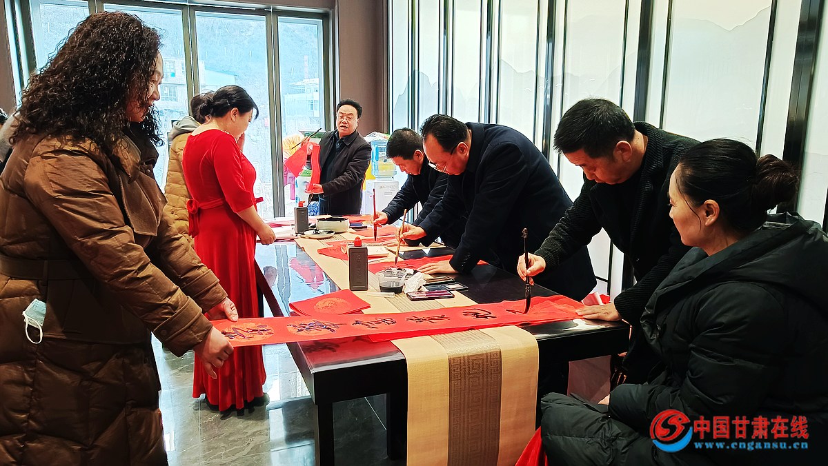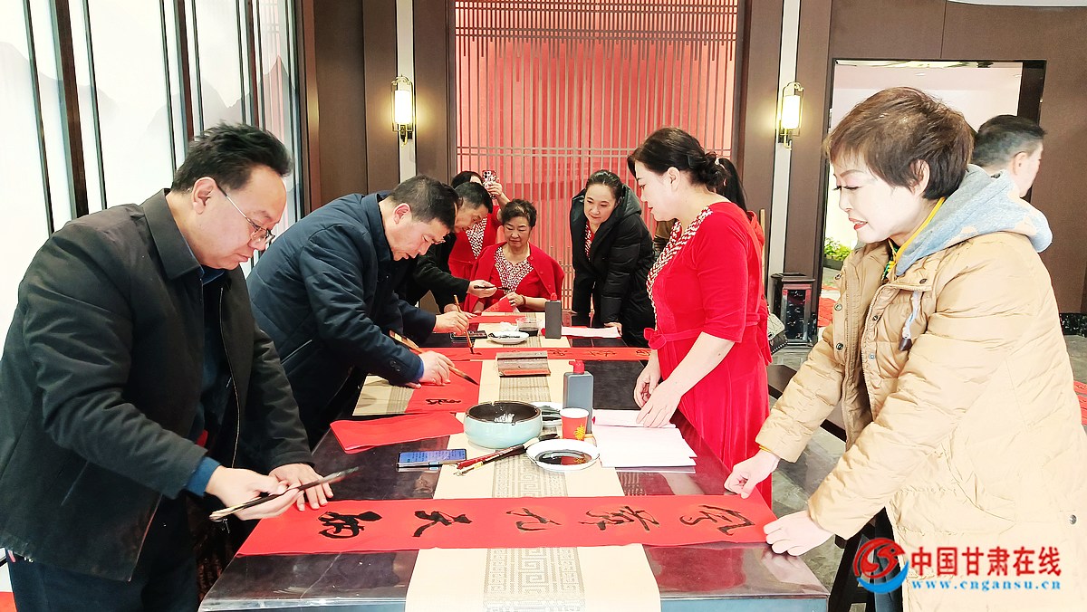 “这副春联写得真好,字也漂亮!”当日,鸿雁宴会大厅洋溢着喜庆的气氛,红红的纸,浓浓的墨,活动现场,艺术团邀请县内书法家们挥毫泼墨,用心用情写下一副副春联、一张张福字,真情的话语,诚挚的祝福,为团员们送上了浓浓的年味和新春祝福。