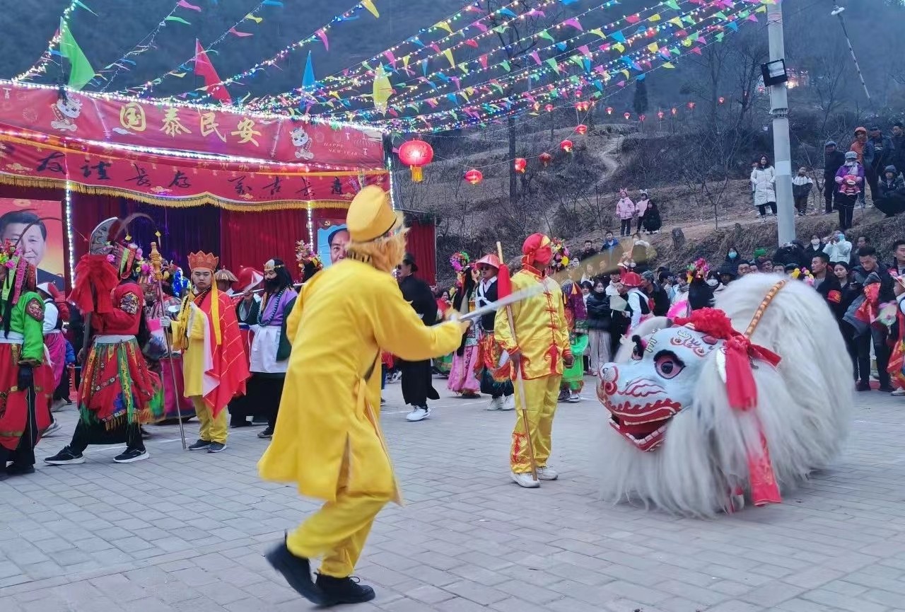 尽管天气寒冷,但是丝毫不影响演出,柏家沟全村老小齐上阵,村民就是演员,演员就是村民,从田间地头到房前屋后,从随意演唱到舞台表演,“年味儿”就在这一古老神圣的仪式中洋溢出来。