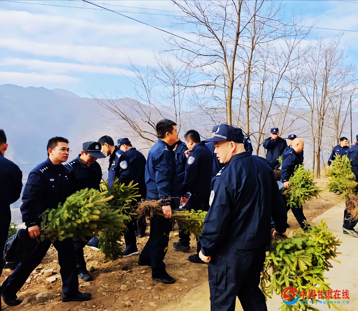 中国甘肃在线宕昌讯 春回大地万物苏,植树添绿正当时。3月20日,宕昌县公安局组织机关全体民辅警在何家堡乡毛榛湾义务植树点开展义务植树活动,传播绿色理念,再添一抹新绿。