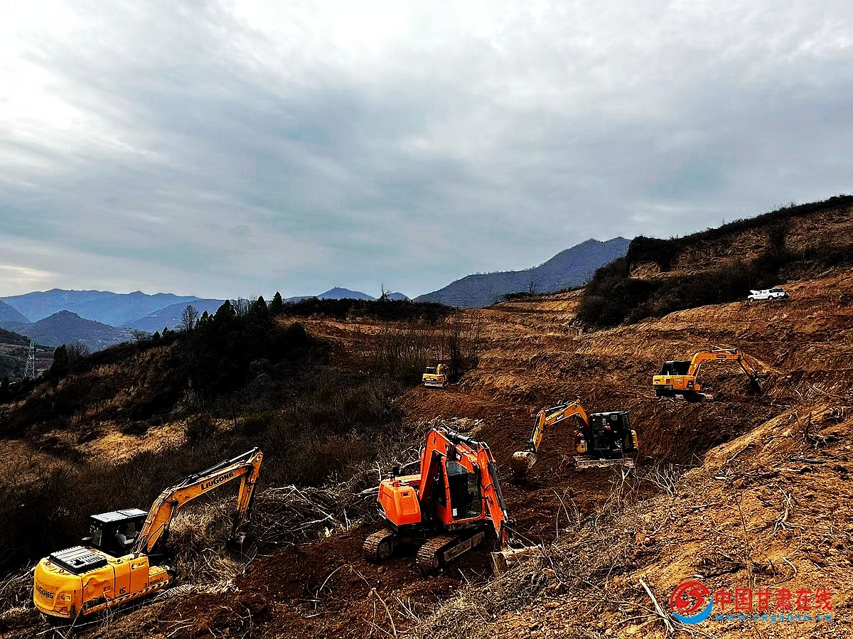 中国甘肃在线两当讯 走进两当县西坡镇苍坪村的甘肃参美优纤生物科技有限公司的苦参种植基地,远远听见挖掘机的轰鸣声,十余台挖机正挥舞着硕大的挖斗,在撂荒地上清理灌木杂草,平整着陡峭的坡地,随着撂荒地整治的推进,一大片平整的良田跃入眼前,让“撂荒闲地”变成“增收宝地”。