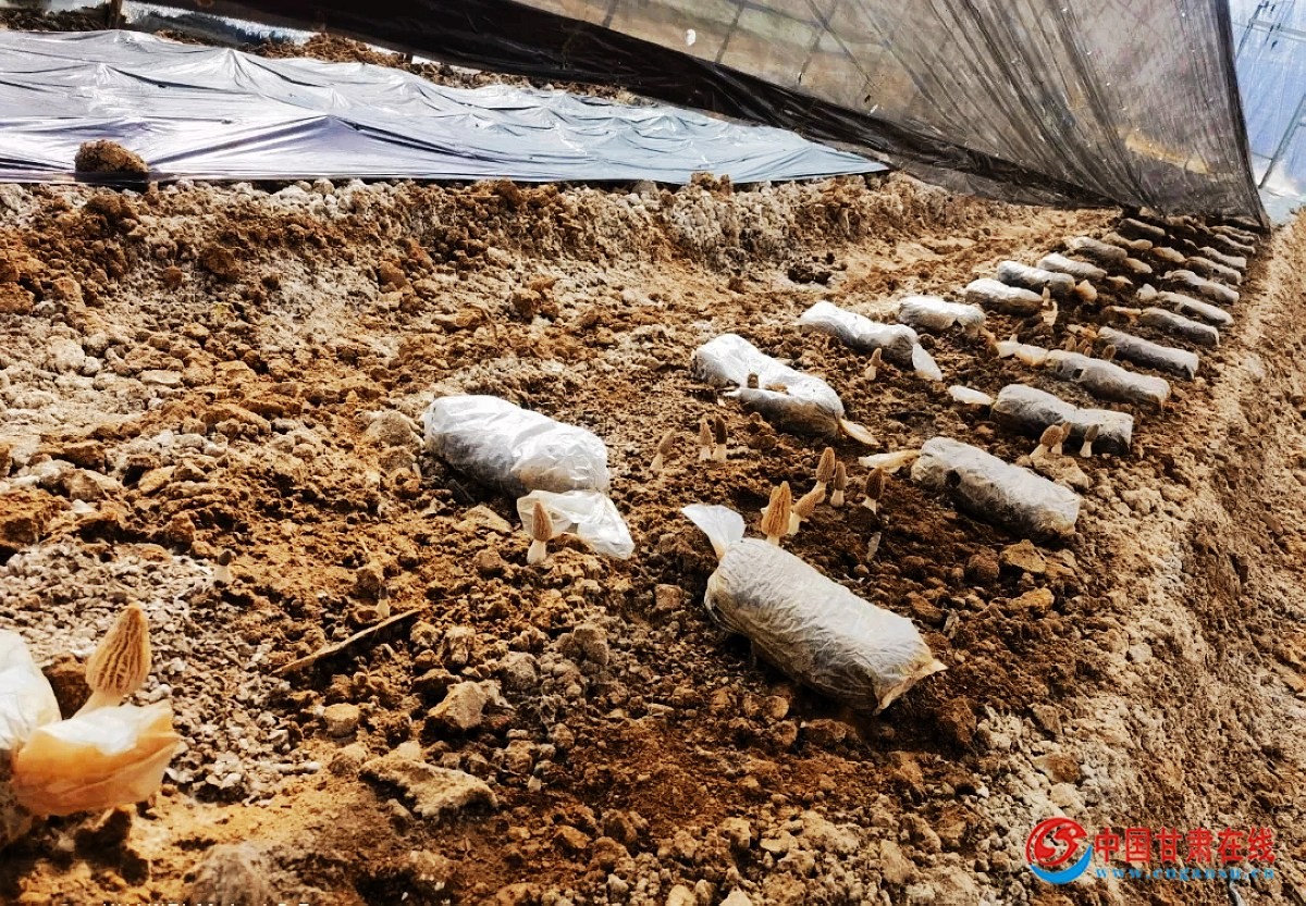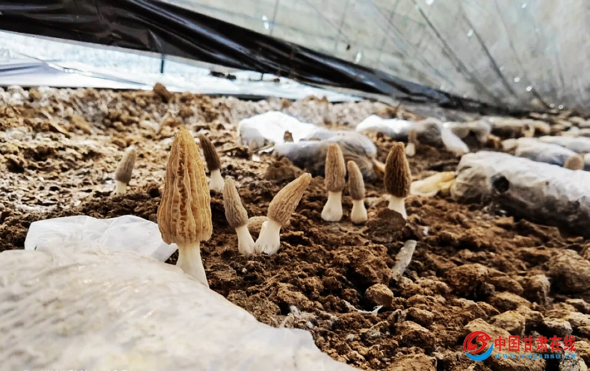 中国甘肃在线两当讯 眼下正是春耕备耕的农忙时节,随着气温逐渐变暖,在两当县城关镇的羊肚菌种植大棚中,一朵朵形态可爱的羊肚菌争相破土而出,撑起褐色的“致富伞”,菌株肉厚而修长,密密麻麻地分布在菌床上。“春耕”伴随着“春收”,让人们也提前感受到了丰收的喜悦。