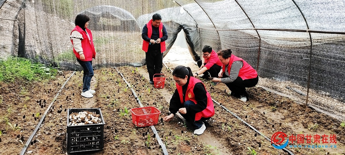 中国甘肃在线两当讯(供稿人:张涛)走进两当县站儿巷镇崖角村大棚基地里,大大小小的羊肚菌破土而出,鲜嫩饱满,长势喜人。一群穿着红色小马甲的志愿队穿梭在大棚内,一手拿着小刀、一手扶着羊肚菌和群众忙着采摘,满脸露出丰收的喜悦。