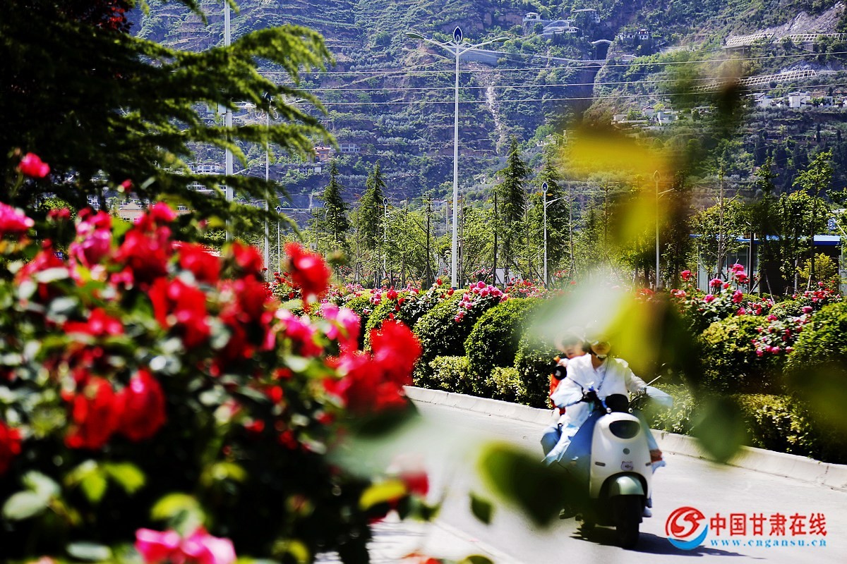 中国甘肃在线武都讯(通讯员 胡本平)人间四月正芳菲。这几天,位于陇南市武都区长江大道绿化带和城区各公园姹紫嫣红的月季花相继开放、空气中散发着芬芳的花香。各类月季、各色花卉、各种乔灌木有机融合、巧妙搭配,形成了一幅幅人在城中、城在花中的和谐图景。