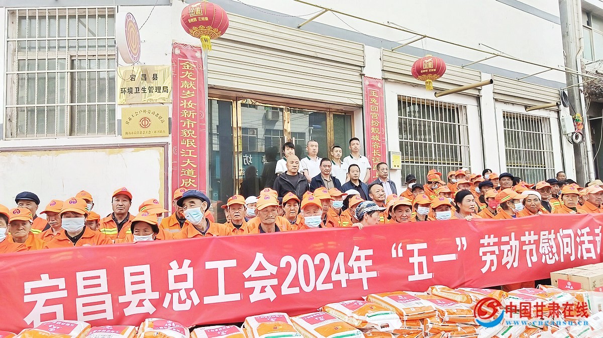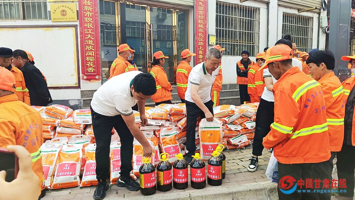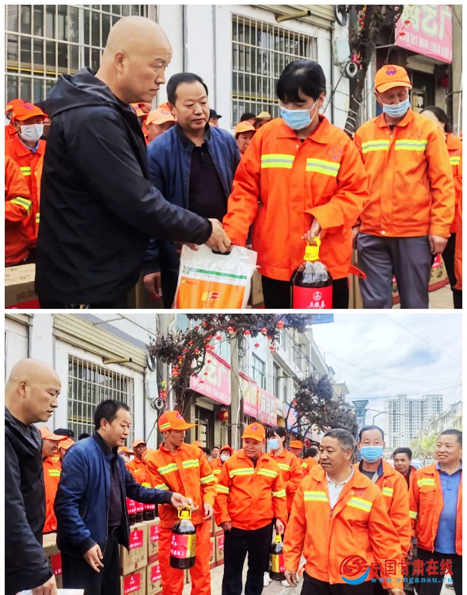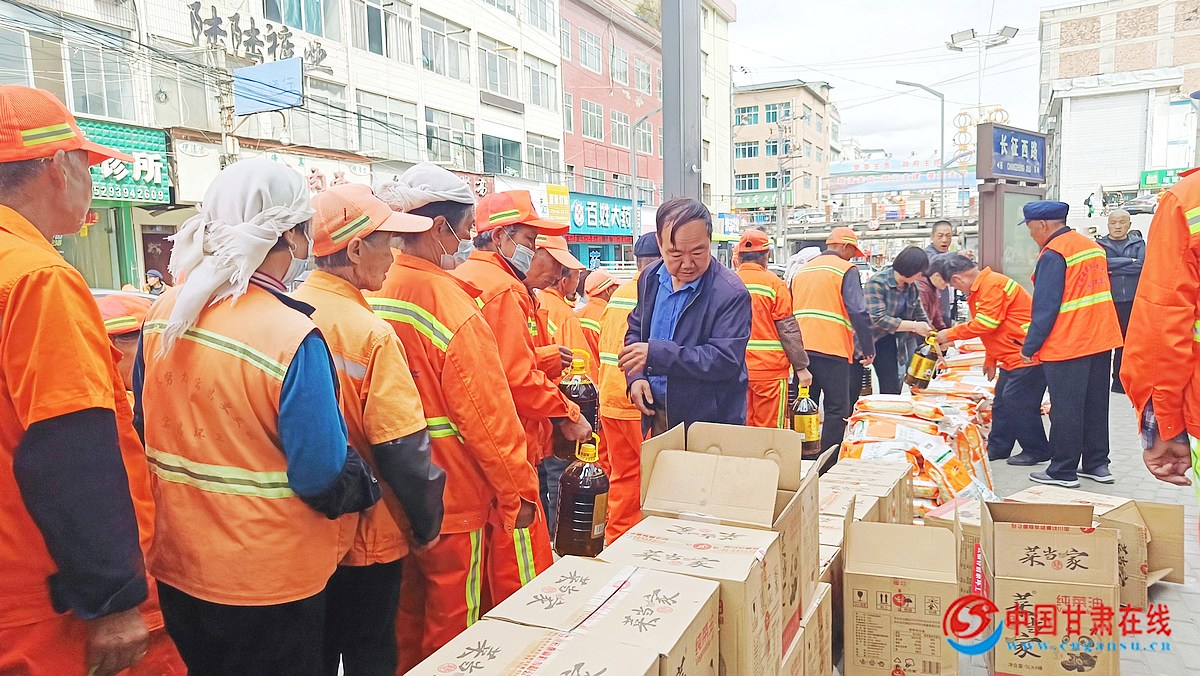 中国甘肃在线宕昌讯 4月30日,宕昌县环卫所、县总工会联合爱心企业开展“五粮春情系环卫工、温暖劳动节、致敬劳动者”慰问活动,为一线环卫工人送去节日问候并发放慰问品。