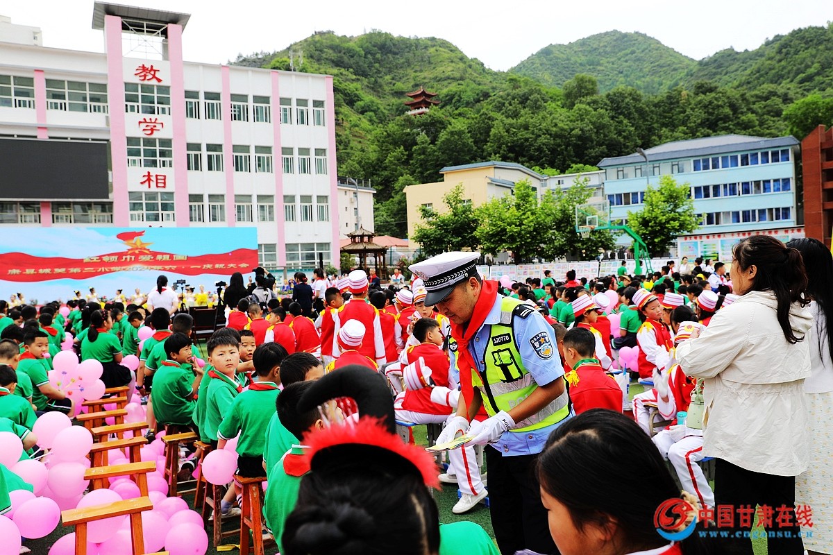 中国甘肃在线康县讯(通讯员:张菁)又是夏荷初绽时,在孩子们最快乐的“六一”儿童节到来之际,康县公安局交警大队积极组织宣传民警到辖区小学开启“护学”模式,为“六一”儿童节活动现场保驾护航,同时为孩子散发了交通安全知识读本、交通安全小黄帽等交通安全“大礼包”。