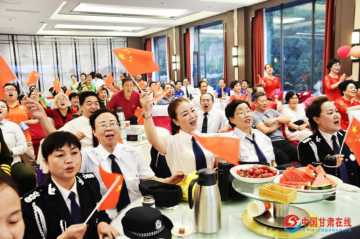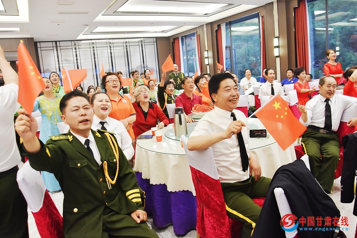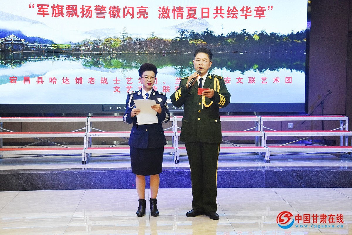 忠诚奉献铸警魂、军旗飘扬展风采。现场气氛热烈、暖意融融,联欢晚会在《当那一天来临》、《强军战歌》的军旅合唱声中落下帷幕。两地艺术团倾情奉献了形式多样的精彩节目,涵盖了大合唱、器乐合奏、歌伴舞,联欢会现场正能量满满,风格特色充分展现了兰州市公安文联艺术团、哈达铺老战士艺术团文艺志愿者队伍的文化素养、才华和老有所为、老有所乐的夕阳风采。