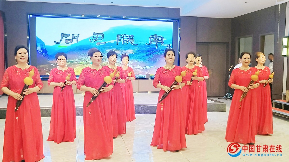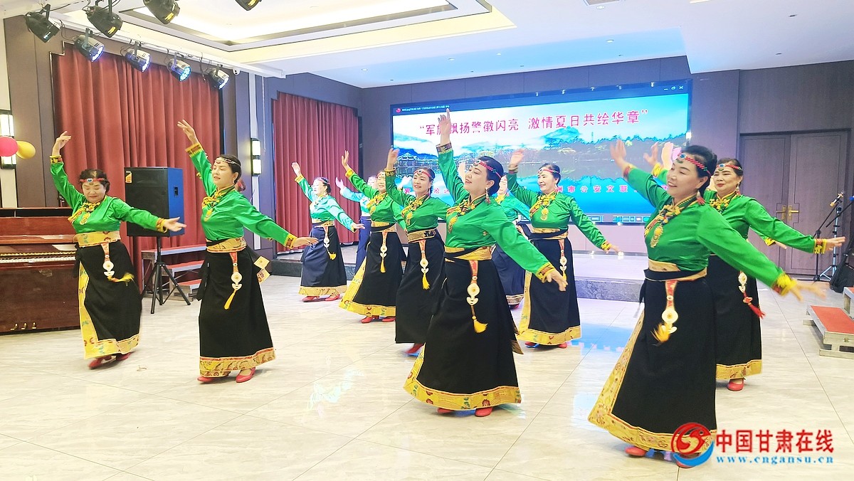 中国甘肃在线宕昌讯 避暑胜地,相约宕昌,高歌猛进。 6月15日,兰州市公安文联艺术团、哈达铺老战士艺术团《军旗飘扬警徽闪亮激情夏日共绘华章》文化艺术交流联谊晚会,在宕昌县鸿雁音乐大厅举行,用热情、奔放、欢快的歌舞展示艺术交流团夕阳红成员多姿多彩的学习生活,昂扬向上的精神风貌。