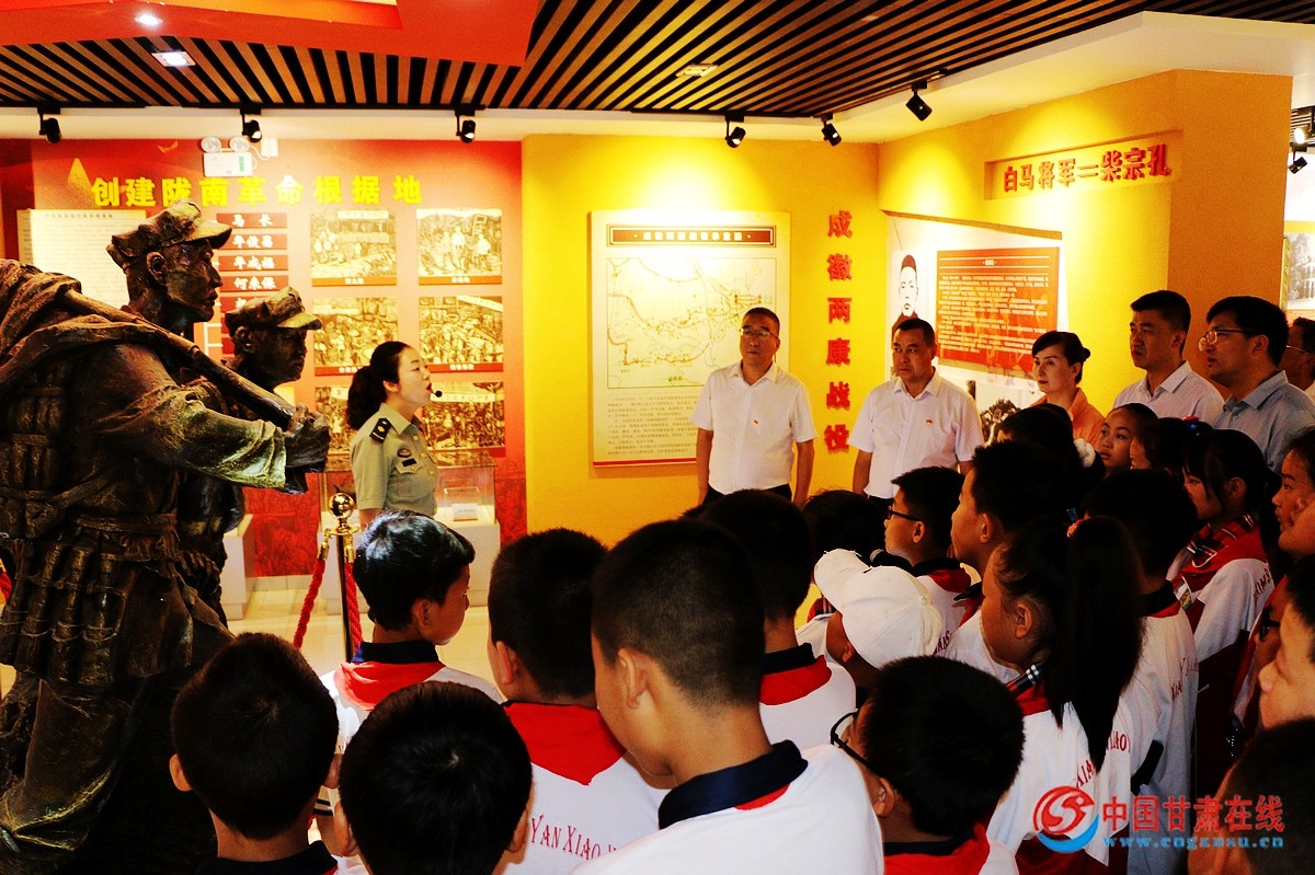 中国甘肃在线礼县讯 7月5日,第三届陇南市“青少年党史学习月”暨“青少年游基地学党史”教育活动启动仪式在礼县实验小学举行,市县关工委和相关单位负责人及该校全体师生参加启动仪式。