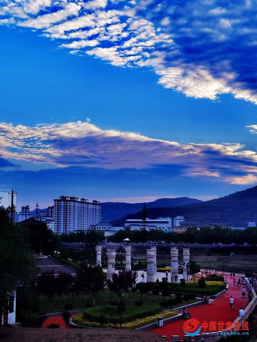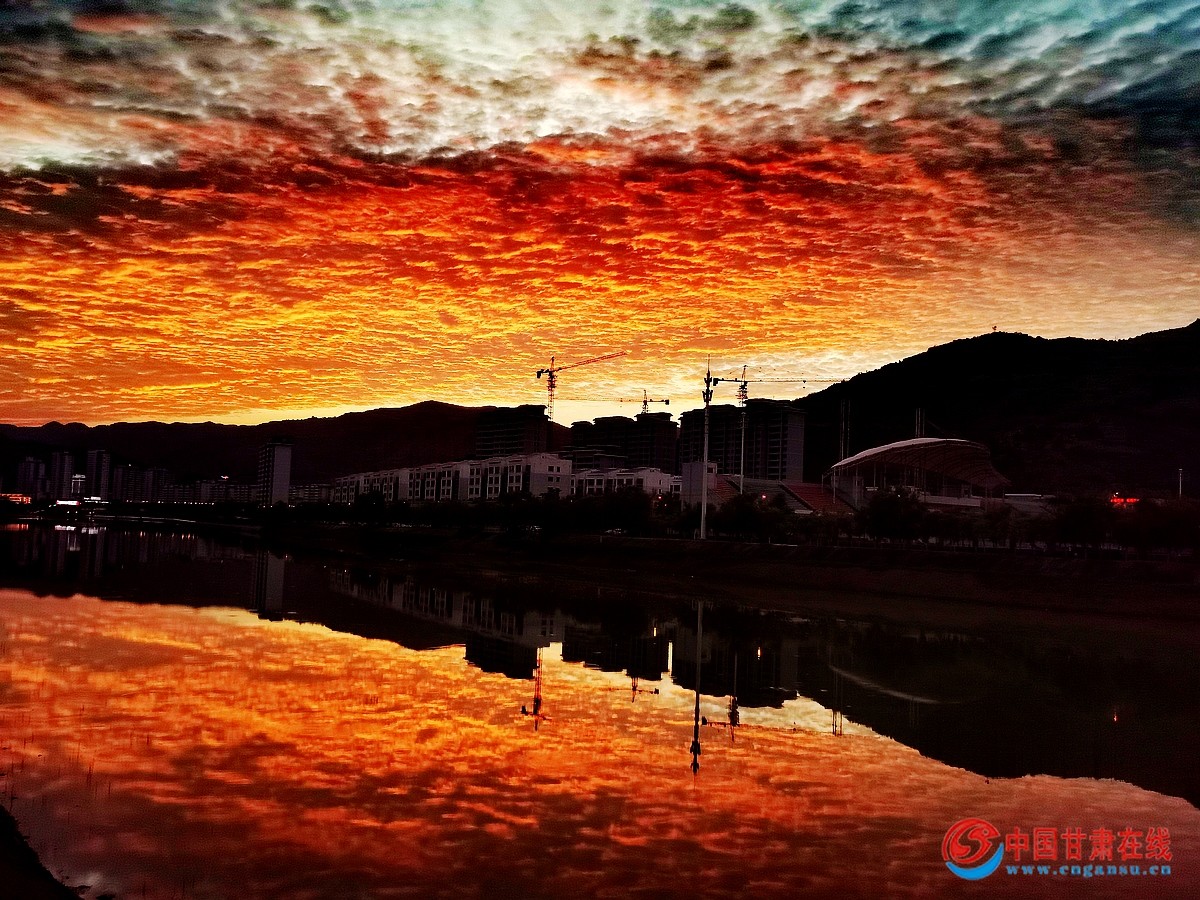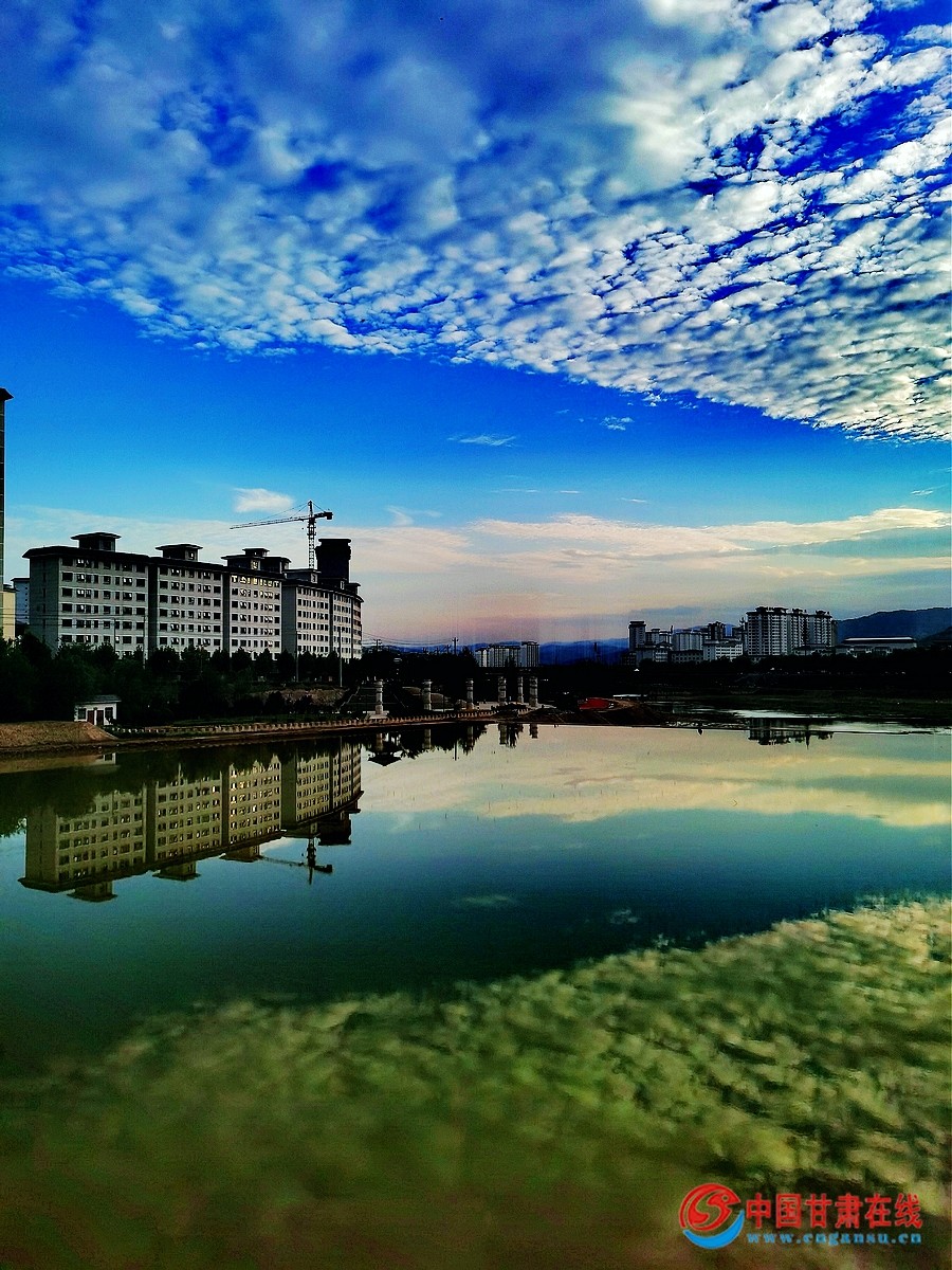 中国甘肃在线礼县讯 盛夏之际,临近傍晚,夕阳西下,金色的光晖将湛蓝色的天空晕杂得耀眼斑斓,洁白的云朵镶上美丽的花边。天边出现了火烧云,那红的像火的霞光映在辽阔的西汉水河水面上,像铺上了一层玫瑰色的光辉,犹如一面发光的镜子,清水碧蓝潋滟,河边绿油油的水草扭动着它们婀娜的腰肢,仿佛跳着热情的舞蹈,欢迎人们的到来。
