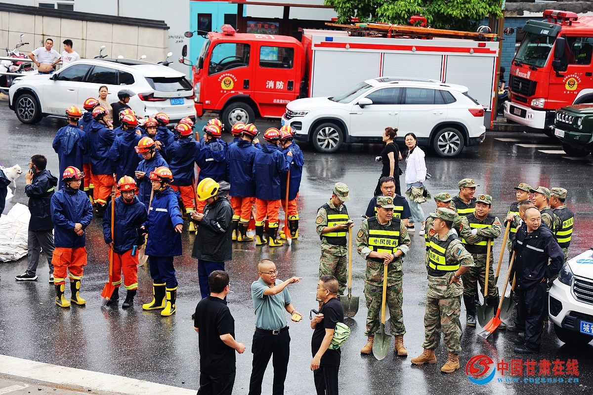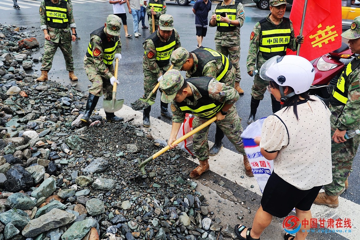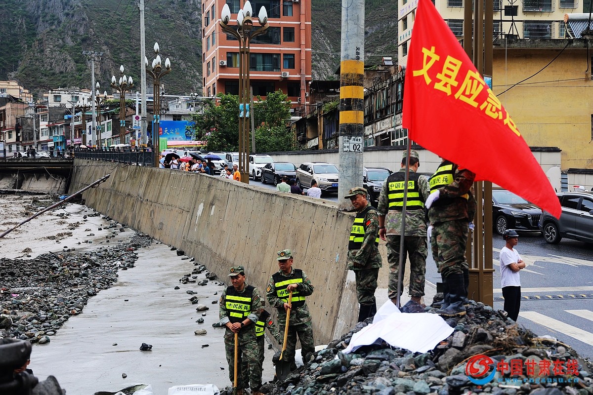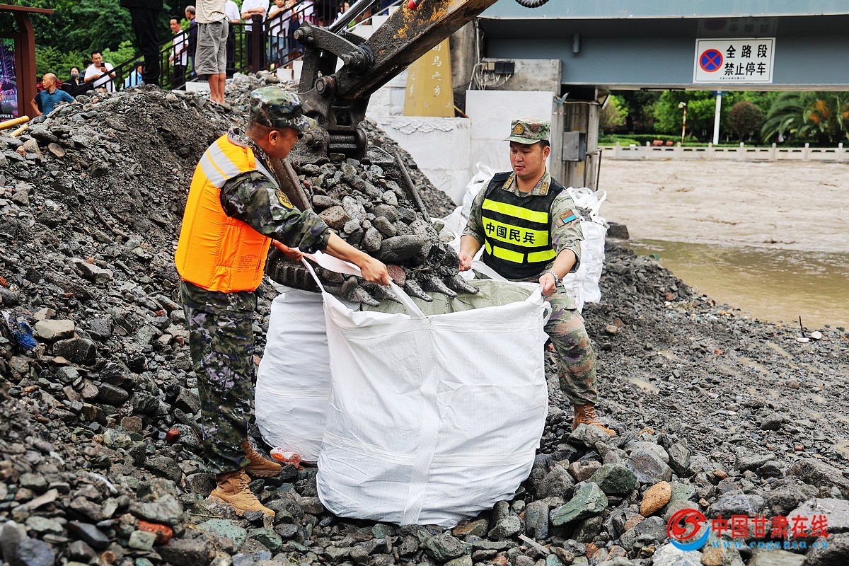 传达完灾情情况后,文县人武部组织现场救援队分工实施,在文县第一人民医院附近执行堤坝加固、转移群众等任务,全力阻击洪峰过境给县城造成的影响。下游的碧口镇、中庙镇组织民兵等救援力量积极参加转移群众、搜救失联人员、堤坝巡查等工作中,民兵队伍闻“汛”而动,奋战骤雨激流,筑起守护人民群众生命财产安全的“迷彩大堤”。