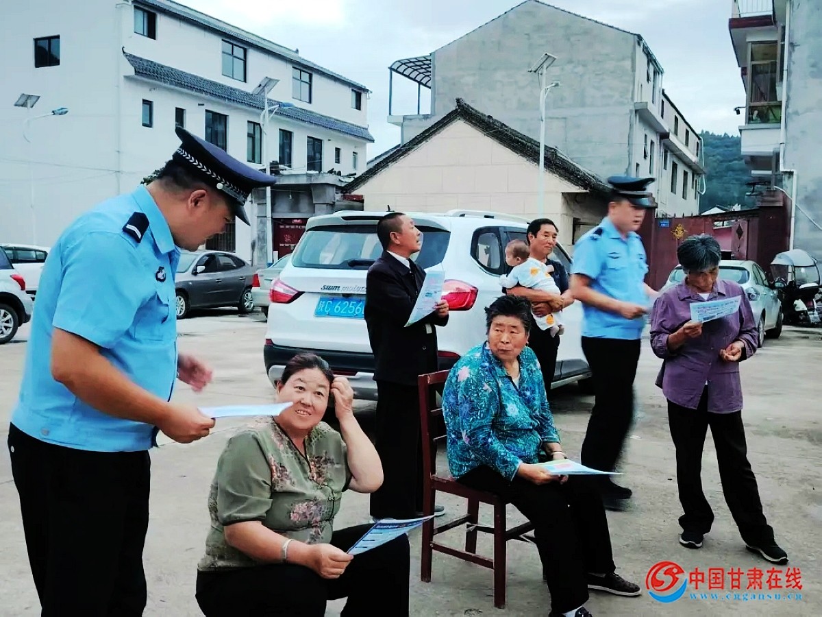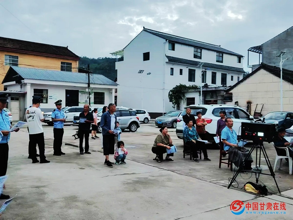 中国甘肃在线两当讯 为进一步丰富大家的业余文化生活,拓展毒品预防教育的深度和广度,大力提高人民群众禁毒知识,8月15日,两当县城关镇司法所、派出所联合开展禁毒影片放映、普法宣传活动。