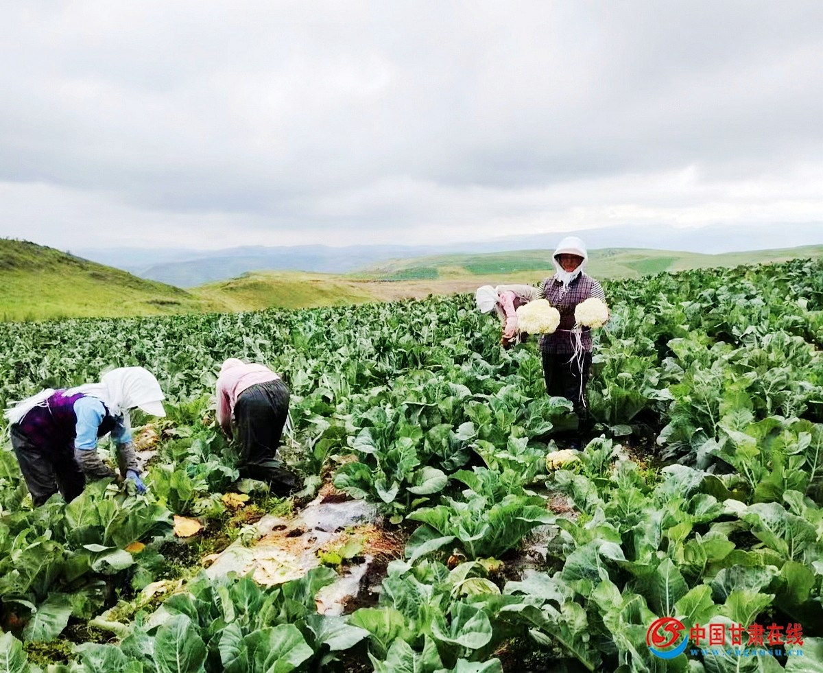 中国甘肃在线宕昌讯 “别小瞧这些花菜,俺们乡亲们都靠它钱包都鼓了,笑容也多了。”近日,在宕昌县八力镇力源农民专业合作社联合社高原夏菜种植基地,80多亩优质花菜迎来收获季,村民们正在忙着采摘、装运。